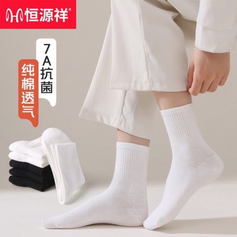 恒源祥品质保障!精梳棉+抗菌科技,吸汗透气不闷脚,运动休闲都舒适~ 17.19元任选黑白双色!中筒设计贴合不滑落,百搭裤装裙装,性价比之选! 舒适一夏,从一双好袜开始!