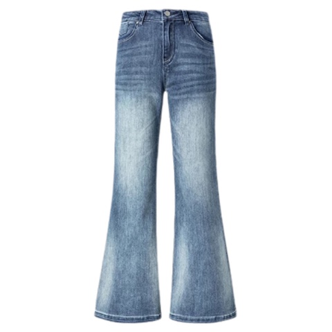 浅蓝色高腰垂感不贴腿微喇裤2026