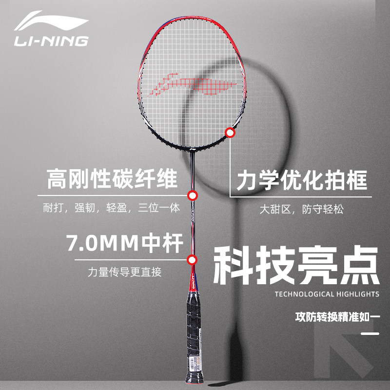【239-官方立减40-50券-淘金币7.17=141.83,叠加消费券到手124】李宁羽毛球拍全碳素高碳超轻耐用型单套装,超赞~