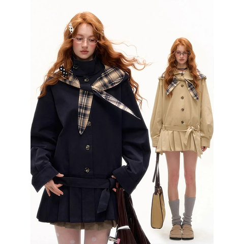 48¥ MF937 jhrMUtzTHdj¥ https://m.tb.cn/h.iczaCR2 可拆卸兔耳朵帽子百褶风衣秋季新款学院风甜美减龄外套女