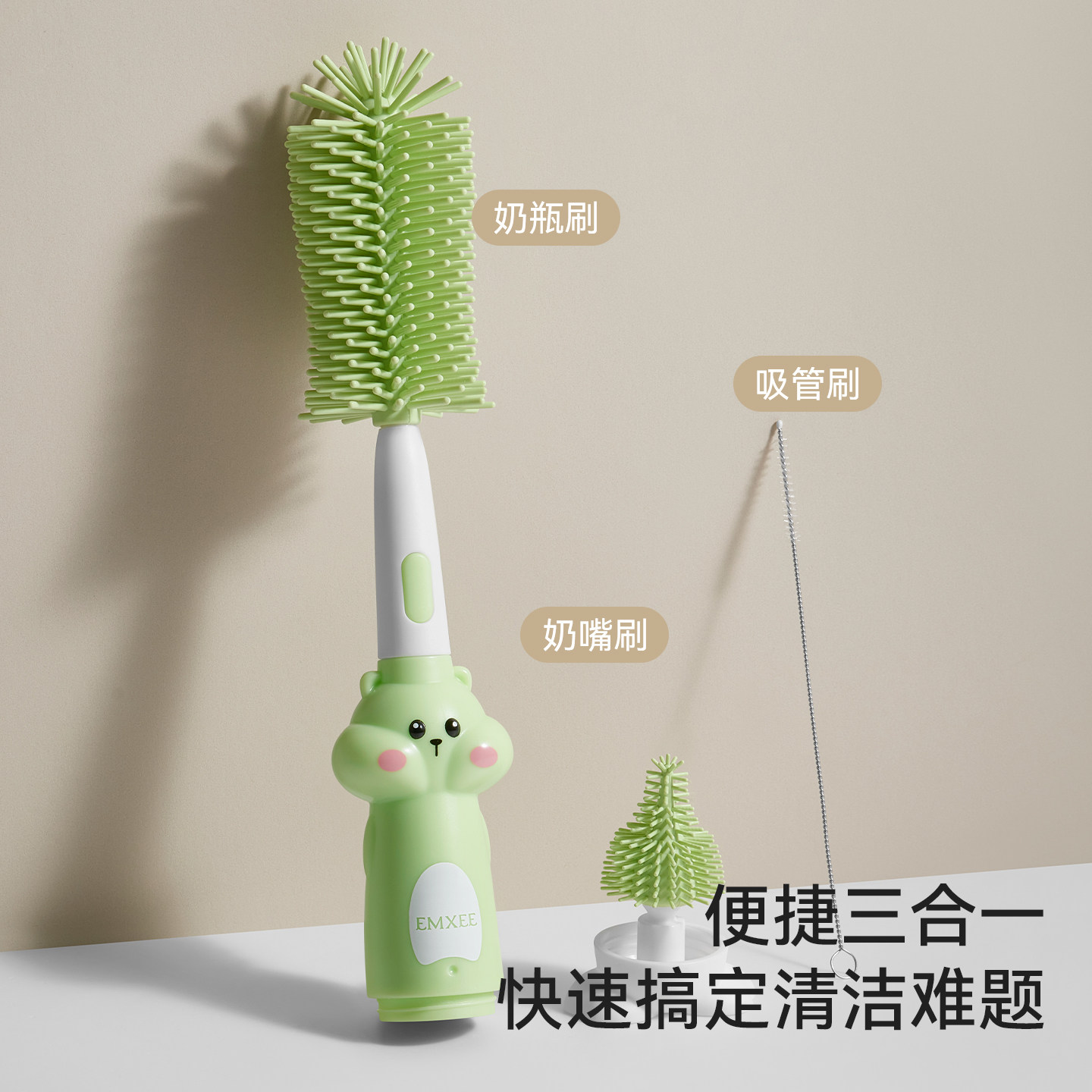 不挑器具,洁净不留菌,速清洁,省心收纳,不掉屑不伤杯,轻松搞定各式材质瓶体,去污实力派,奶渍油污一扫而空。