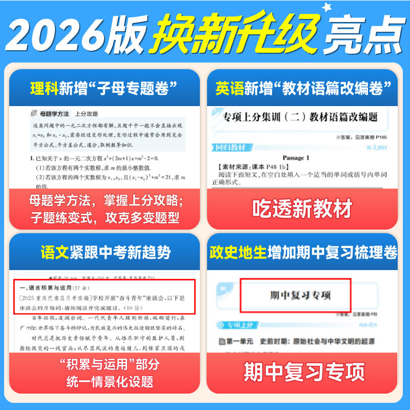 必刷题官方正版!2026初中上分卷,覆盖七至九年级全学科,人教同步+期中期末真题精编,夯实基础、冲刺高分一步到位~ 13.8元起!单册低价入手,全套组合更享超值优惠,学生党闭眼入的提分利器! 新学期提分计划,从这一套开始!
