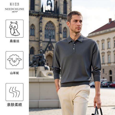 商务休闲POLO男士桑蚕丝羊绒长袖