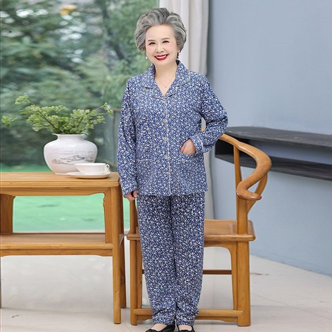 奶奶春秋装翻领开衫全棉睡衣中老年人女妈妈秋季纯棉老太太家居服
