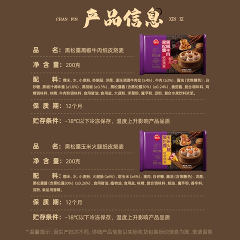思念黑松露纸皮烧麦玉米火腿黑椒牛肉糯米冷冻早餐速食半成品!!