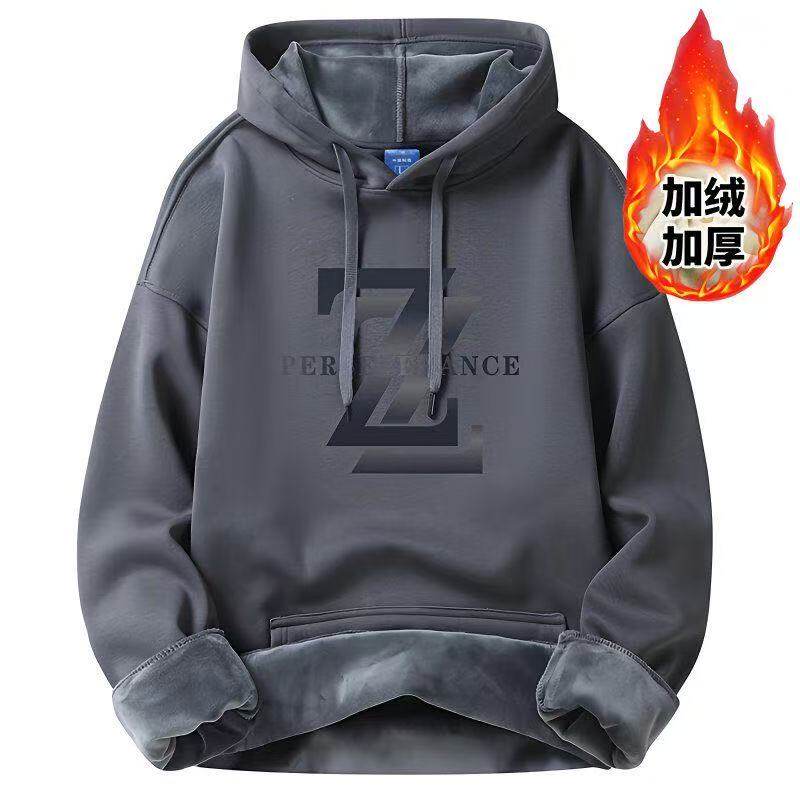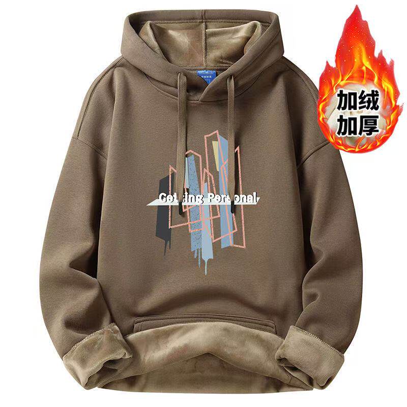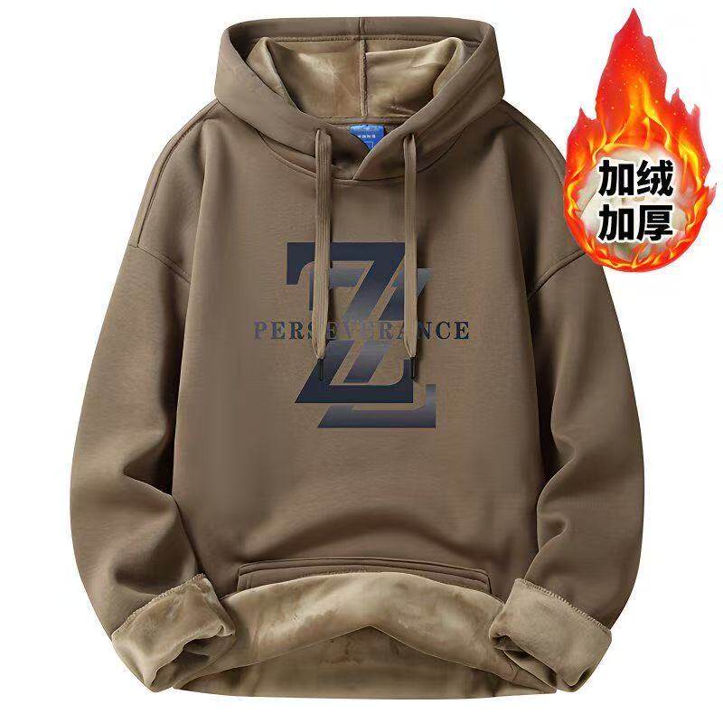 2025秋冬款连帽卫衣男士加绒外套时尚潮流上衣休闲学生加厚帽衫