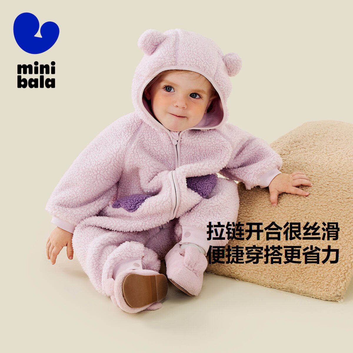 迷你巴拉巴拉婴儿衣服宝宝新生儿加绒连帽连体衣爬服外穿秋冬款