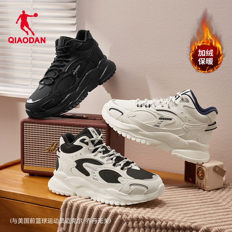 乔丹小千禧高帮加绒保暖棉鞋男休闲鞋2025冬季新款皮面防水运动鞋!