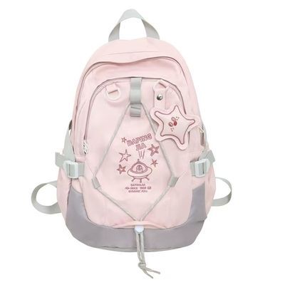 粉色星星刺绣学生双肩包开学立体耐脏日系少女学院风书包