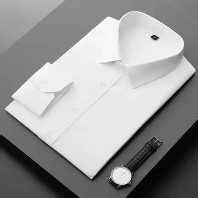 纯色商务春夏薄款长袖衬衫男士商务正装休闲白衬衣免烫黑色寸衫潮