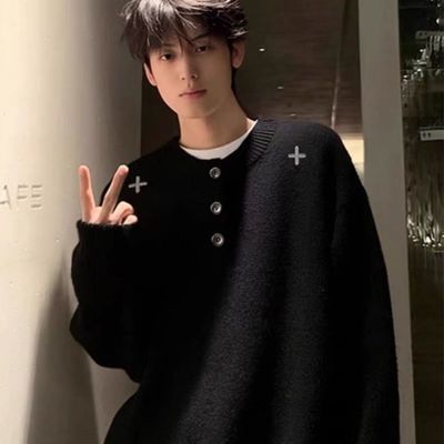 美式刺绣毛衣慵懒风秋冬季高级针织衫ins男女亨利上衣毛衣男冬天