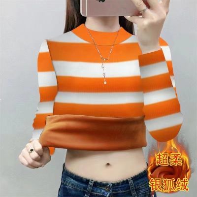加绒加厚2024冬季新款半高领T恤女时尚中国风花好月圆女士保暖衣
