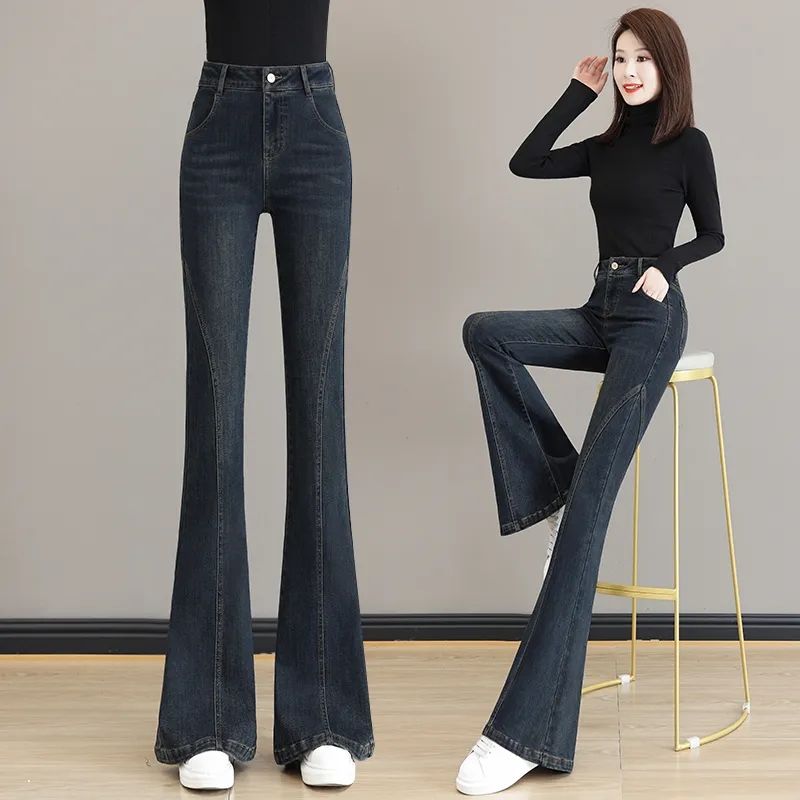 微喇牛仔裤女春秋2026年新款显瘦修身黑色高腰百搭喇叭马蹄裤子女【10天内发货】