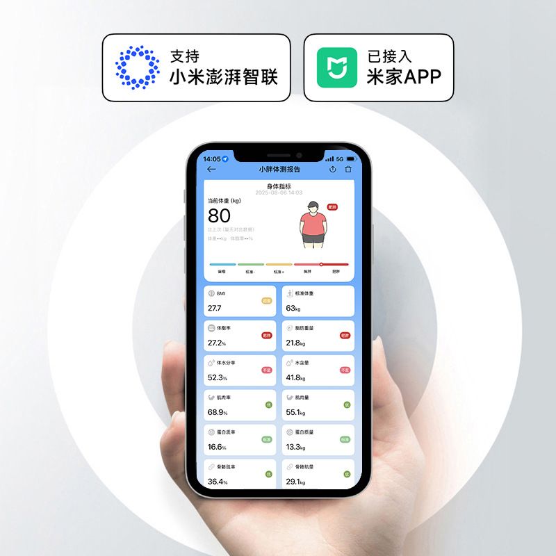天晟钢化玻璃精准体脂秤家用充电电子秤成人适用已接入米家APP
