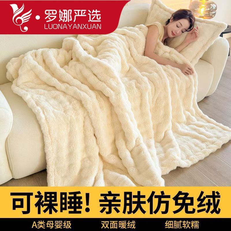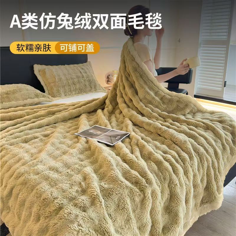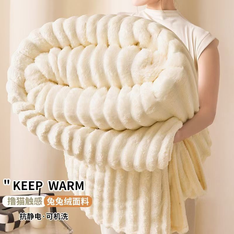 冬日暖心兔绒毛毯|宿舍午睡 / 沙发披盖两用 加厚珊瑚绒四季毯子