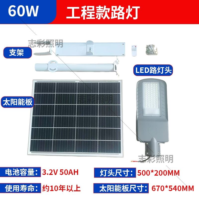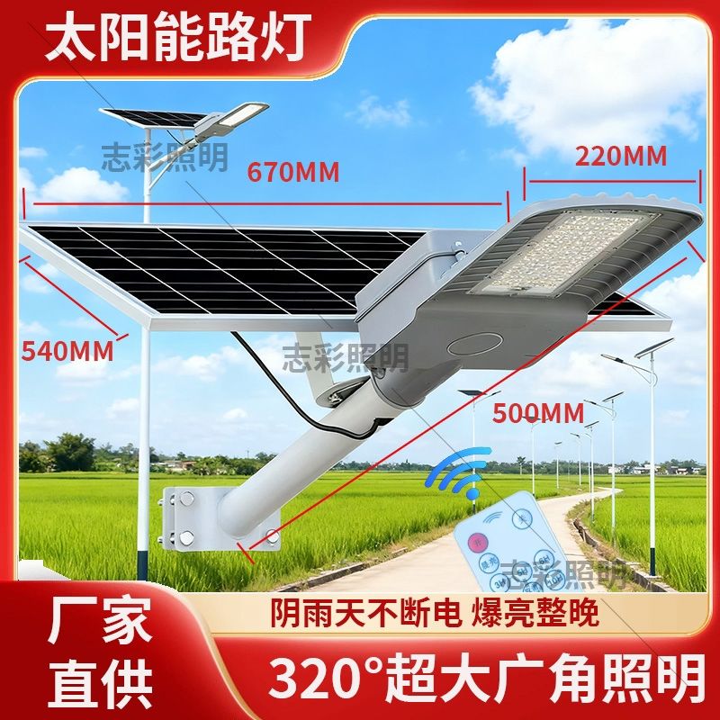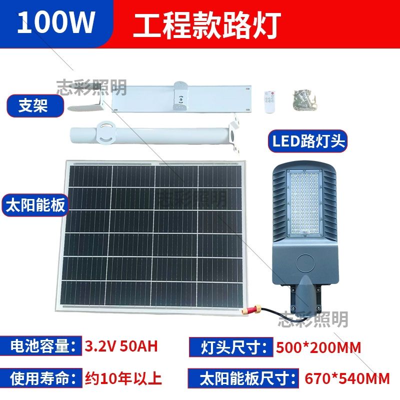 工程专用太阳能路灯户外大功率LED道路灯大容量电池足瓦光伏板