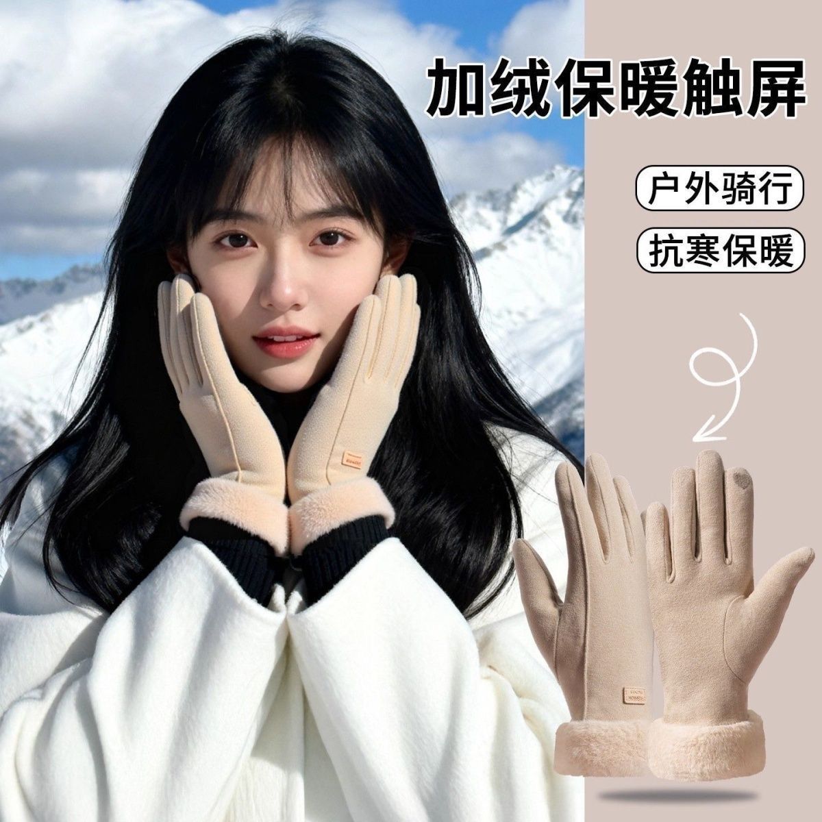 冬季骑电动车保暖防寒德绒加厚护手套加绒厚可触屏手套【3天内发货】