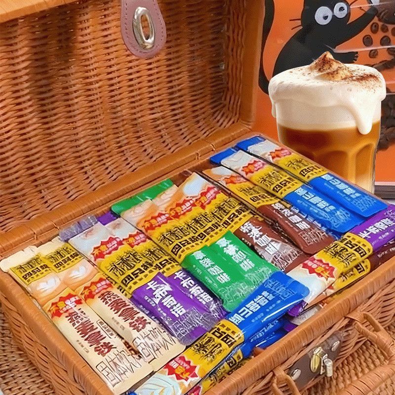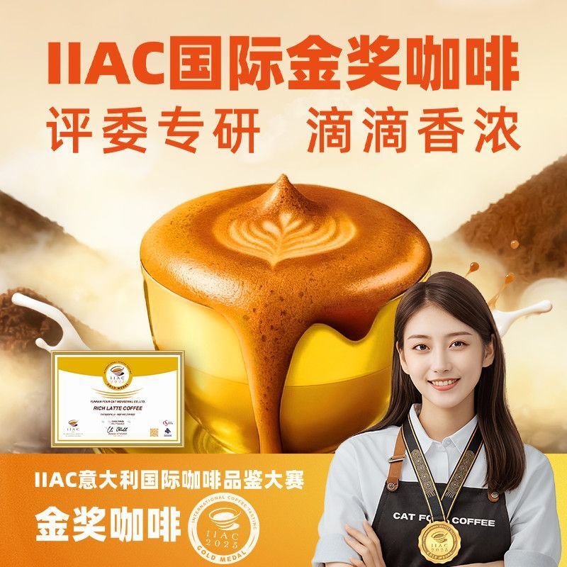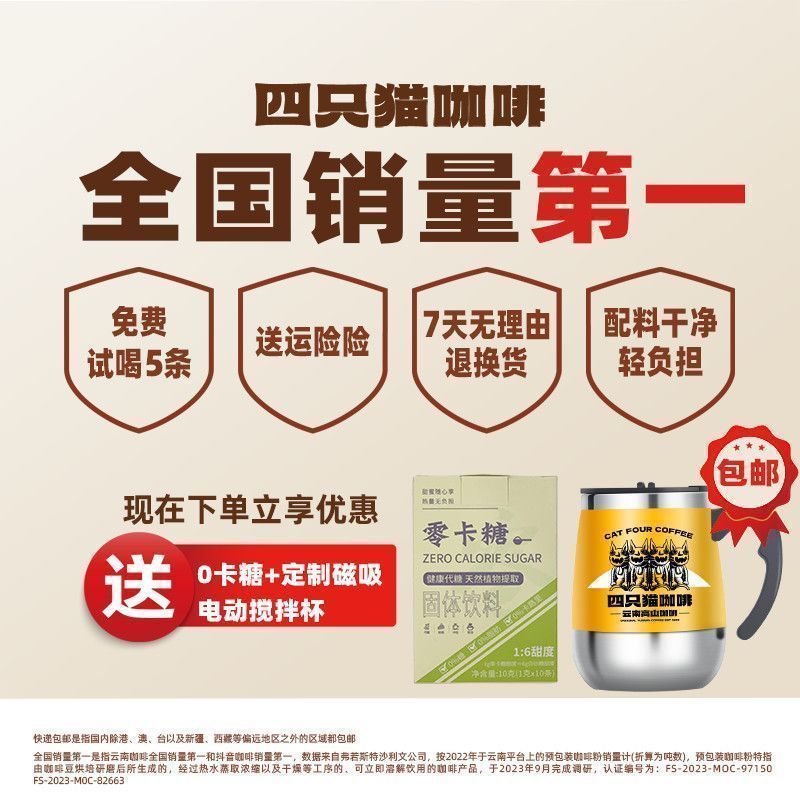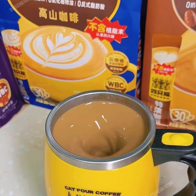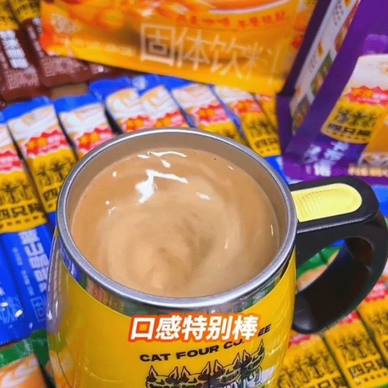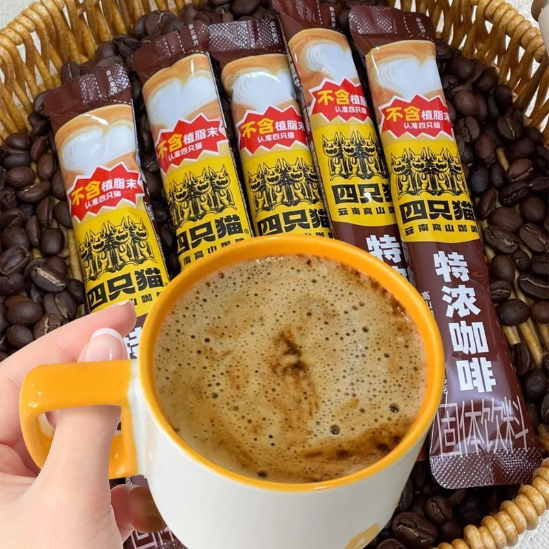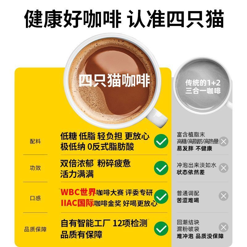 送搅拌杯】四只猫拿铁蓝山特浓卡布奇诺黑咖啡190条新款无植脂末