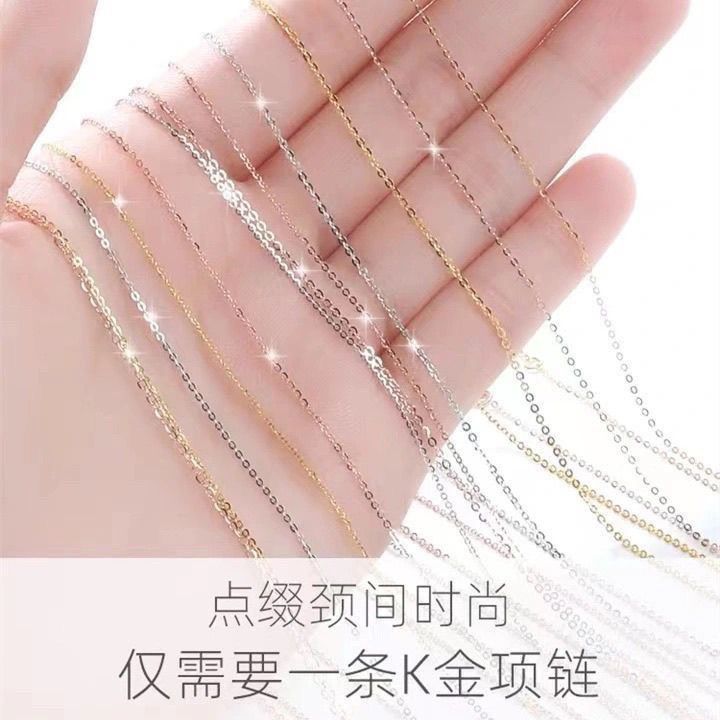 加长款18K金项链女O字链锁骨链素链750黄金玫瑰金彩金闪O细款锁骨