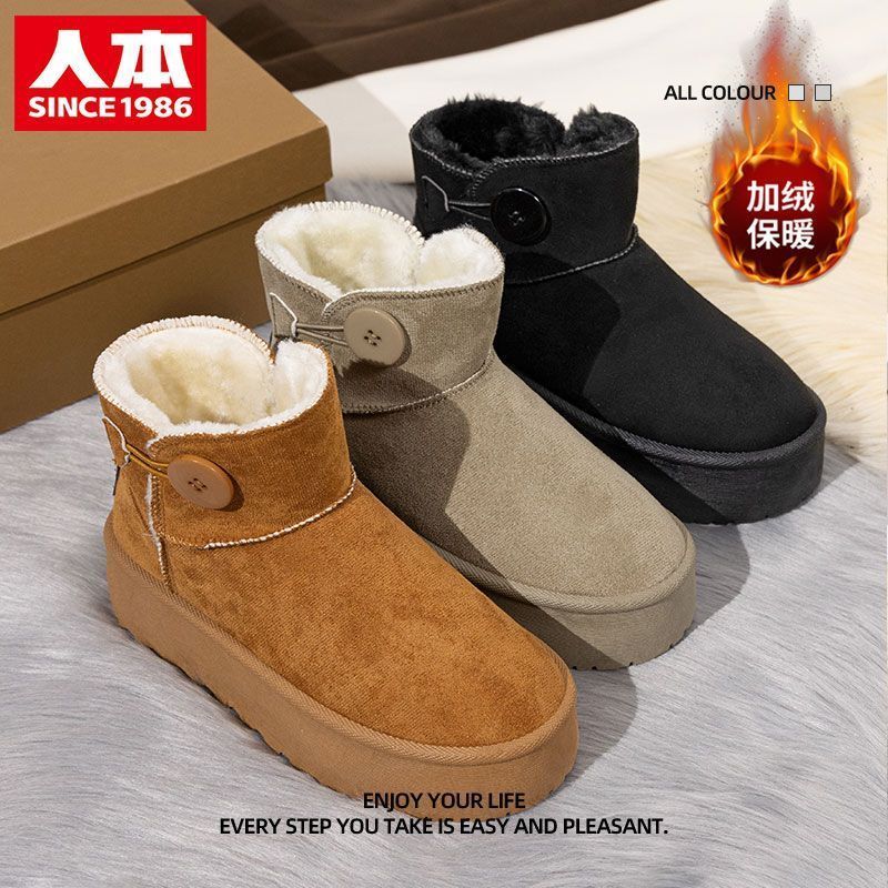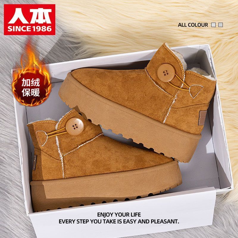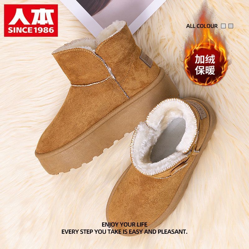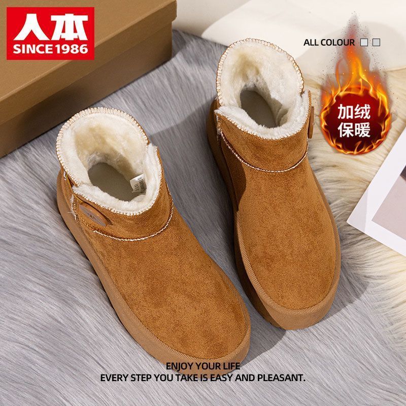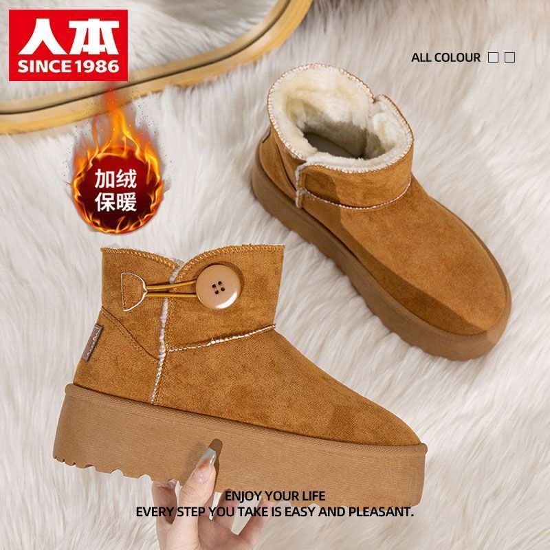 人本保暖雪地靴女2025新款冬季厚底棉鞋加绒毛毛鞋外穿短筒靴子