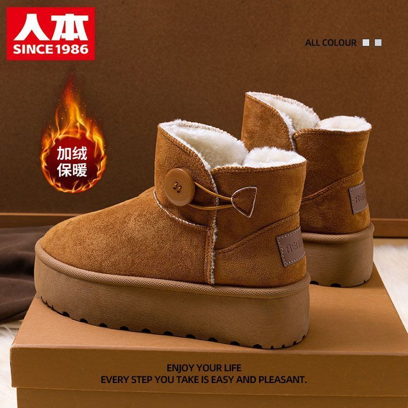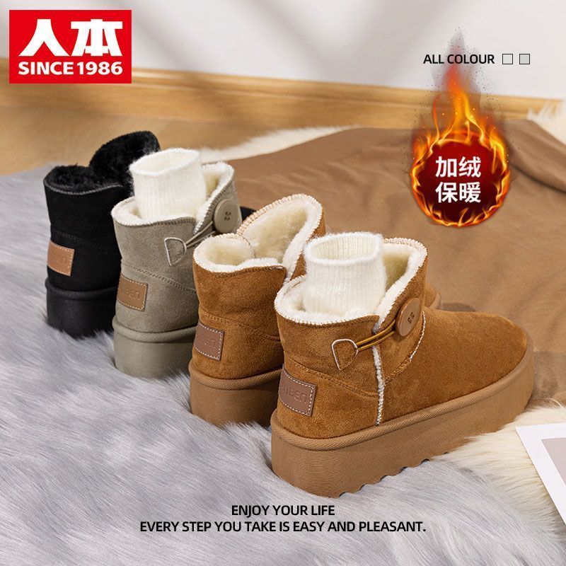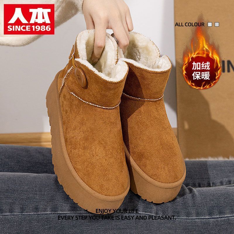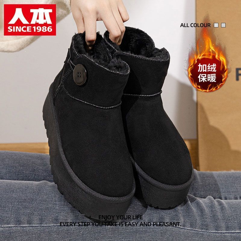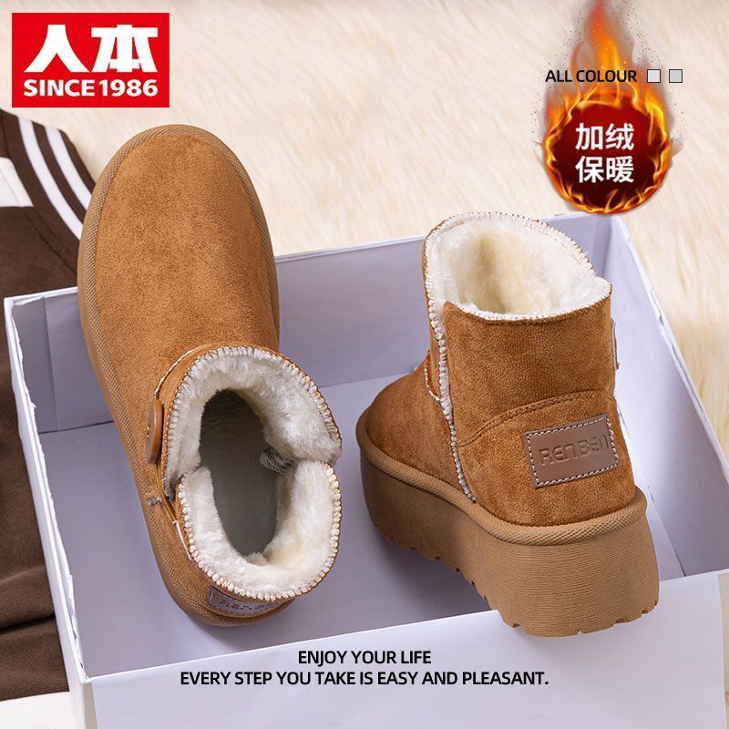 人本保暖雪地靴女2025新款冬季厚底棉鞋加绒毛毛鞋外穿短筒靴子