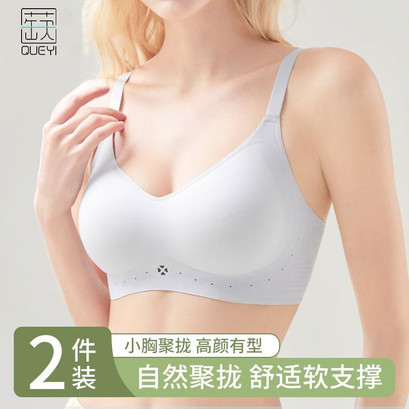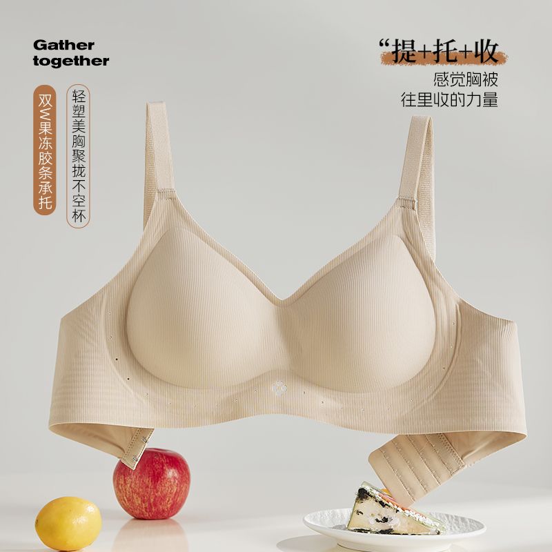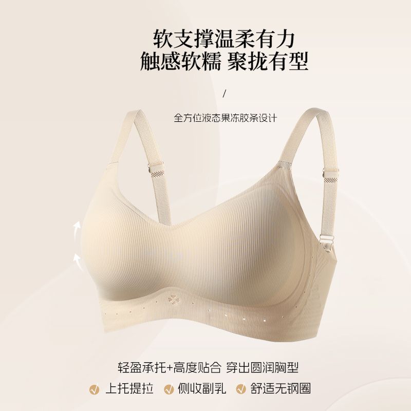 蒛一内衣女舒适无钢圈收副乳果冻胶软支撑无痕美背文胸罩0.8cmBC