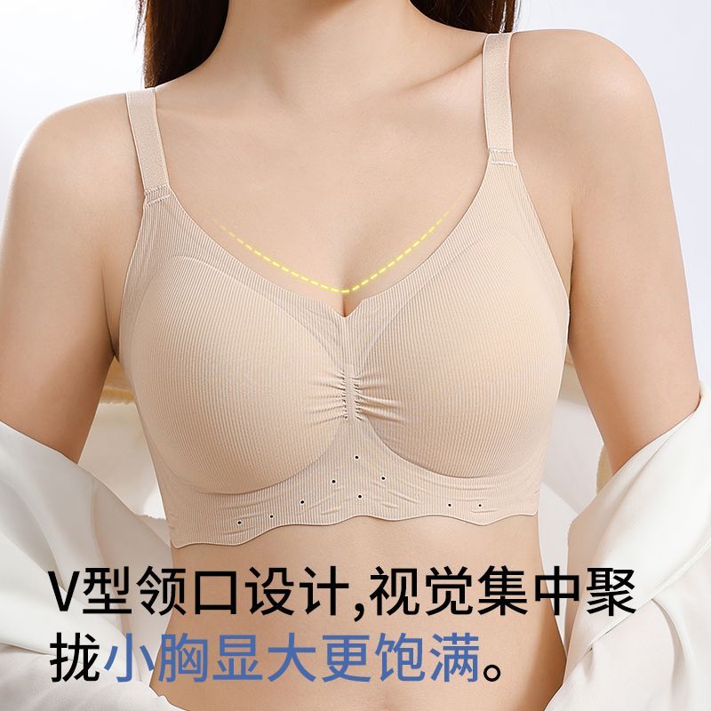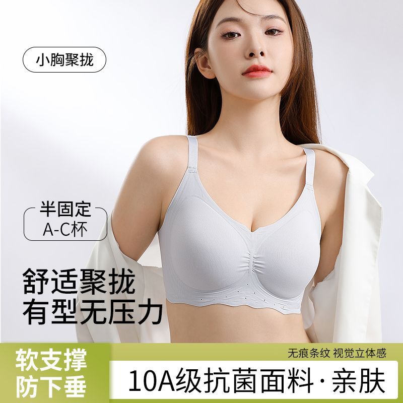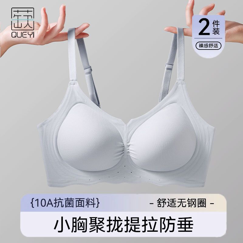 蒛一内衣女小胸聚拢提拉防下垂收副乳软支撑无钢圈抗菌文胸0.5cm