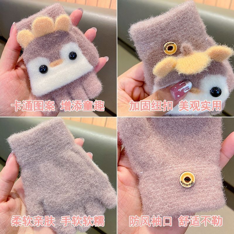 秋冬季韩版可外穿红色女慵懒高级感内搭小众时尚卡通儿童手套【7天内发货】