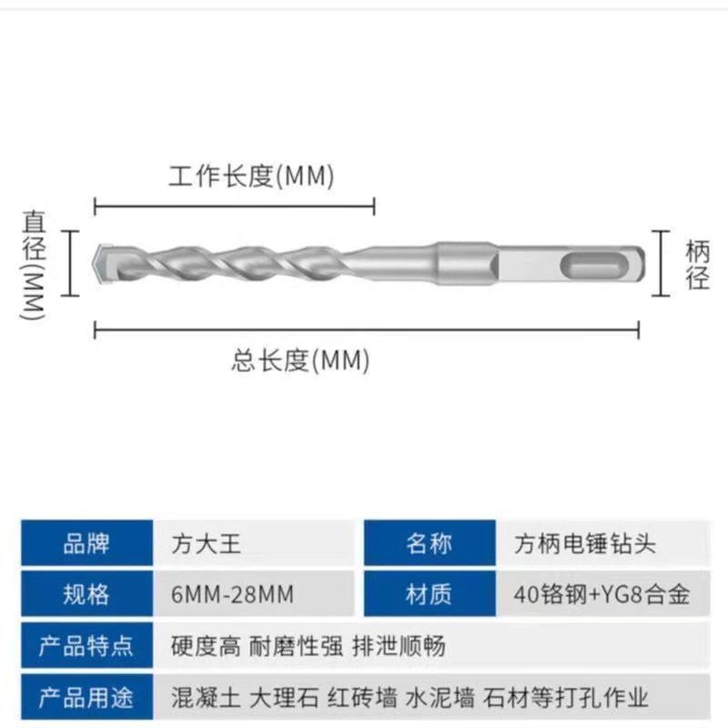 方大王电锤钻头合金方柄冲击加长植筋混凝土开槽打孔四坑穿墙水泥