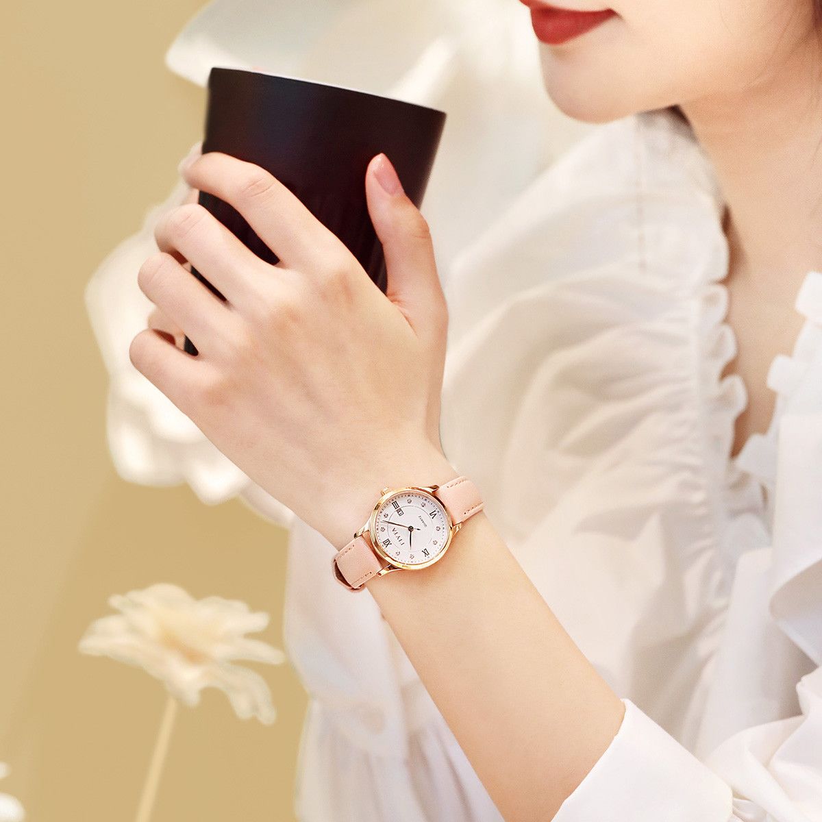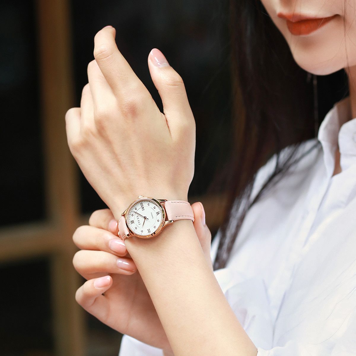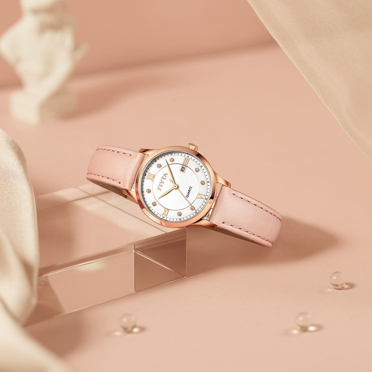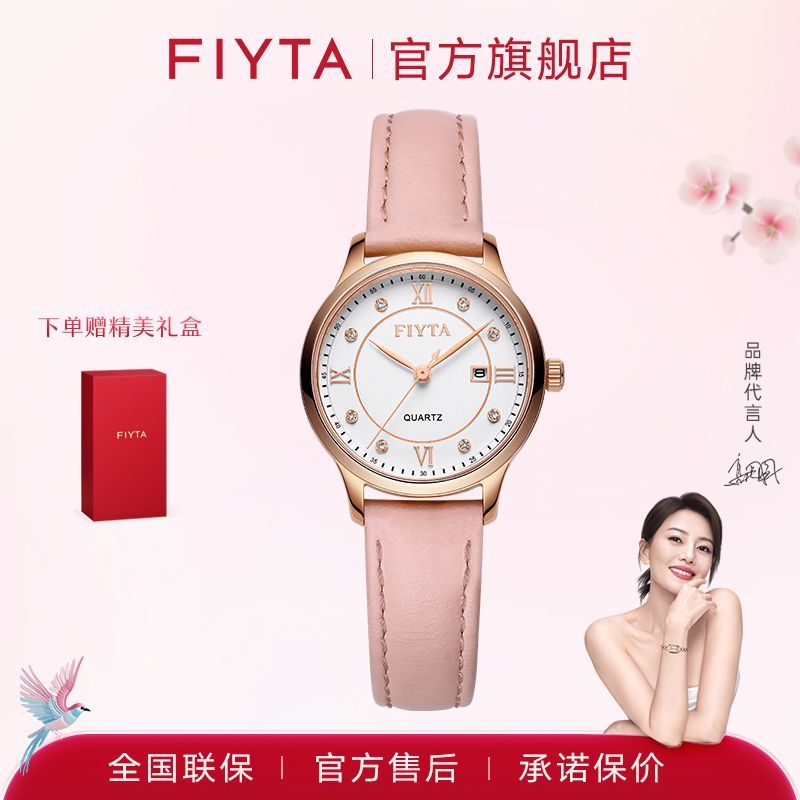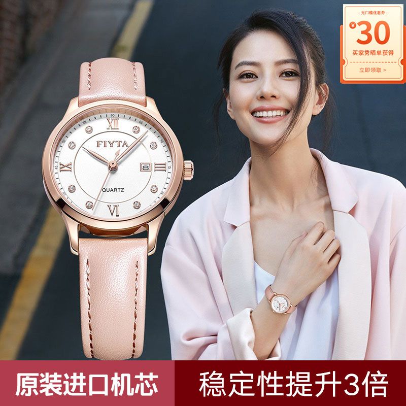 飞亚达送女友简约石英真皮女表时尚高档30M防水
