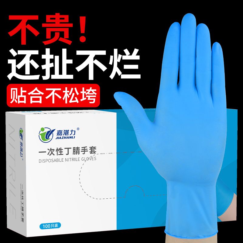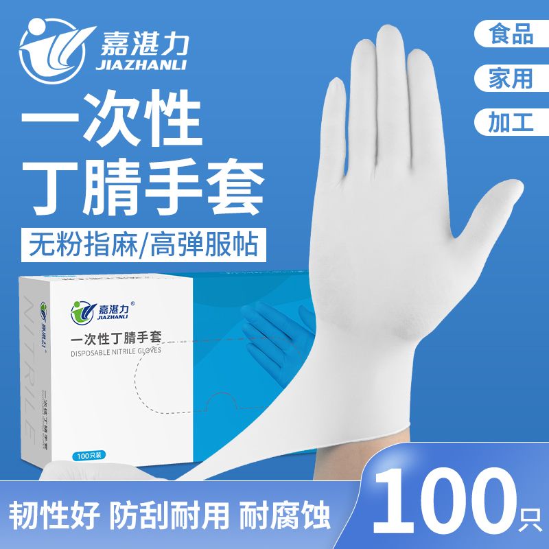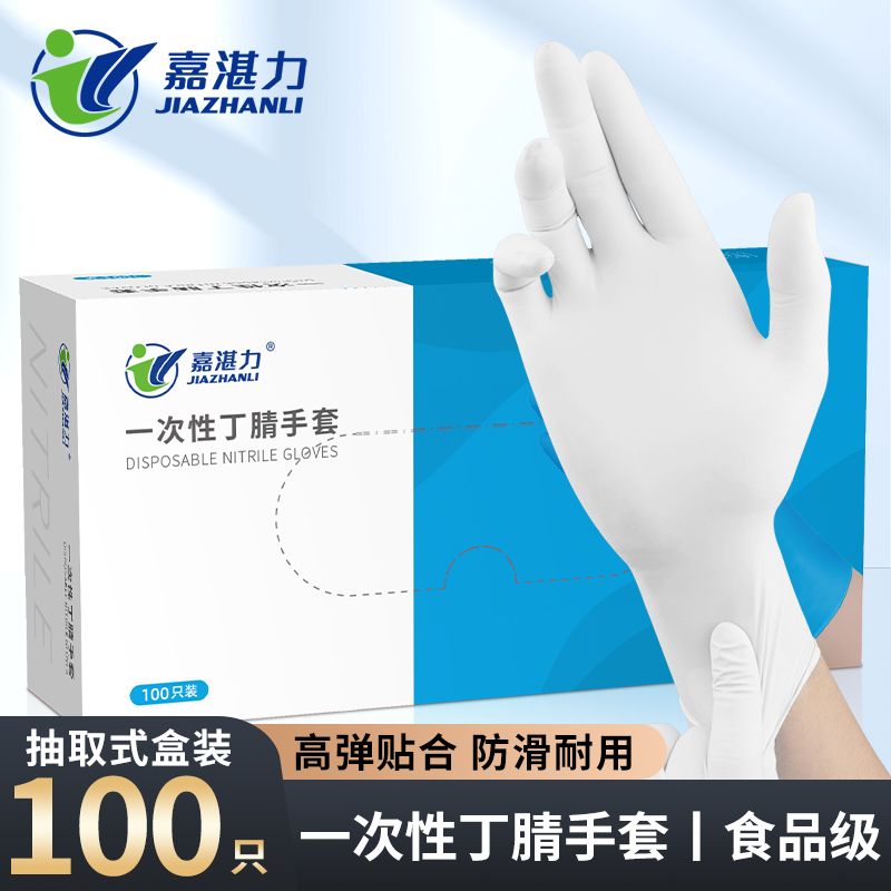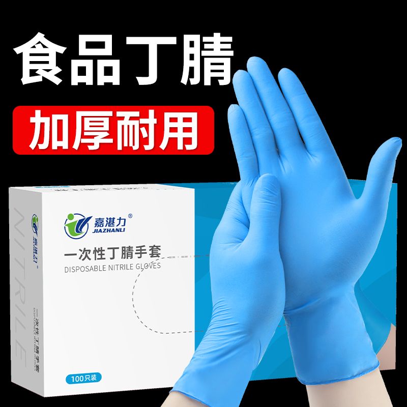 嘉湛力加厚一次性丁腈手套橡胶食品级餐饮美容院高弹耐磨防水洗碗