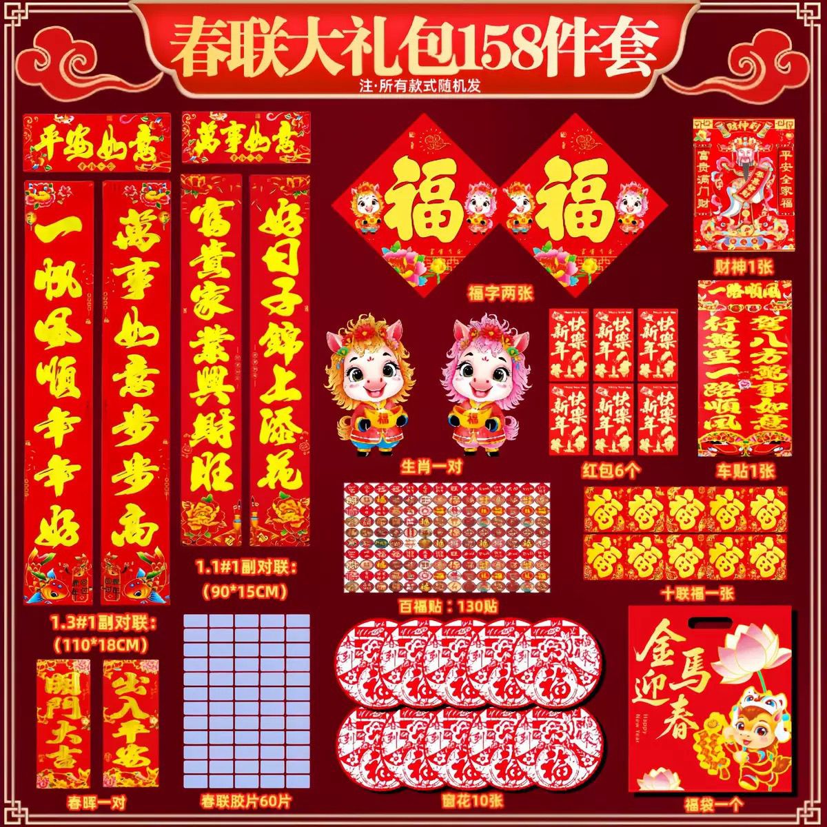 2026马年对联门幅春联春节家用农村大门福字门贴新年画春联大礼包【3天内发货】