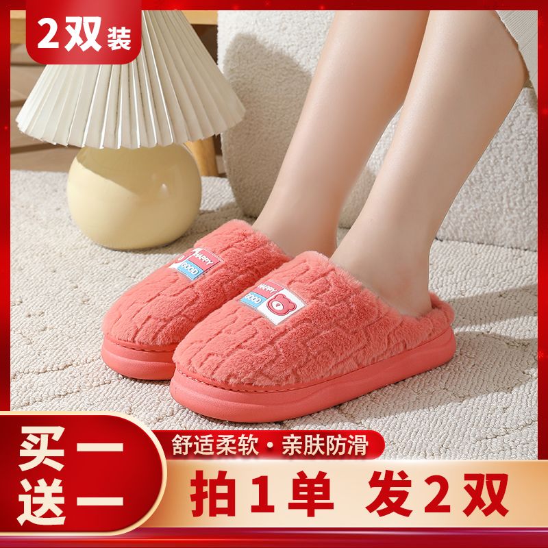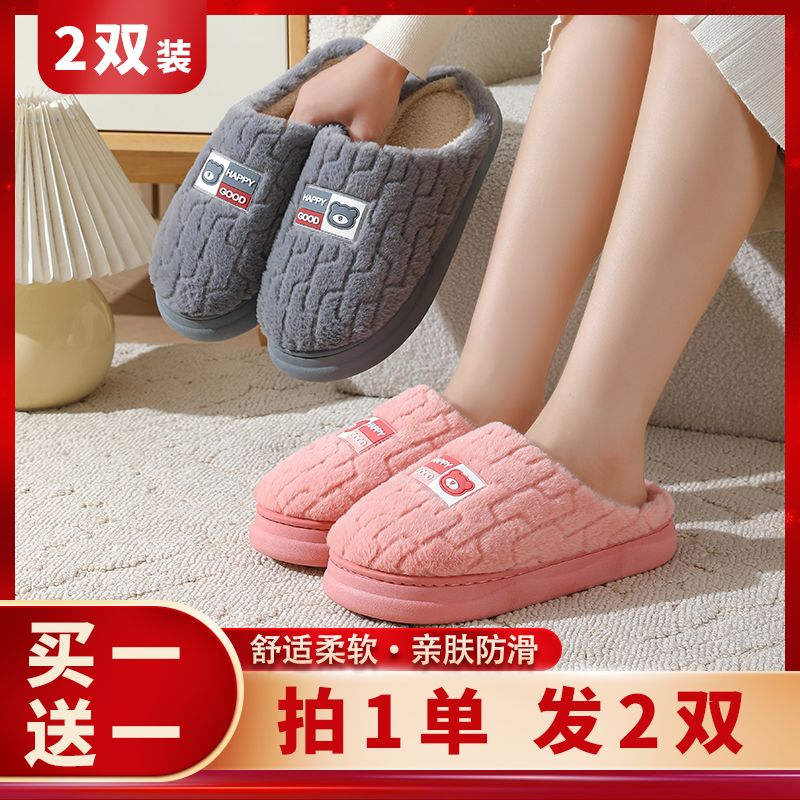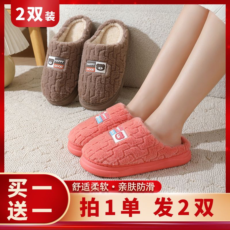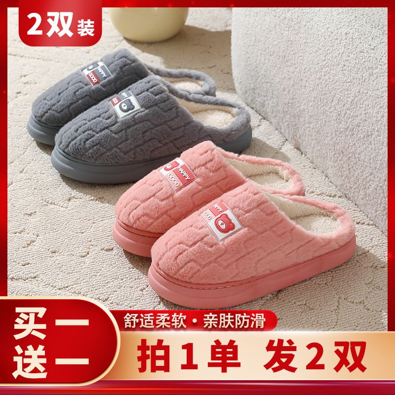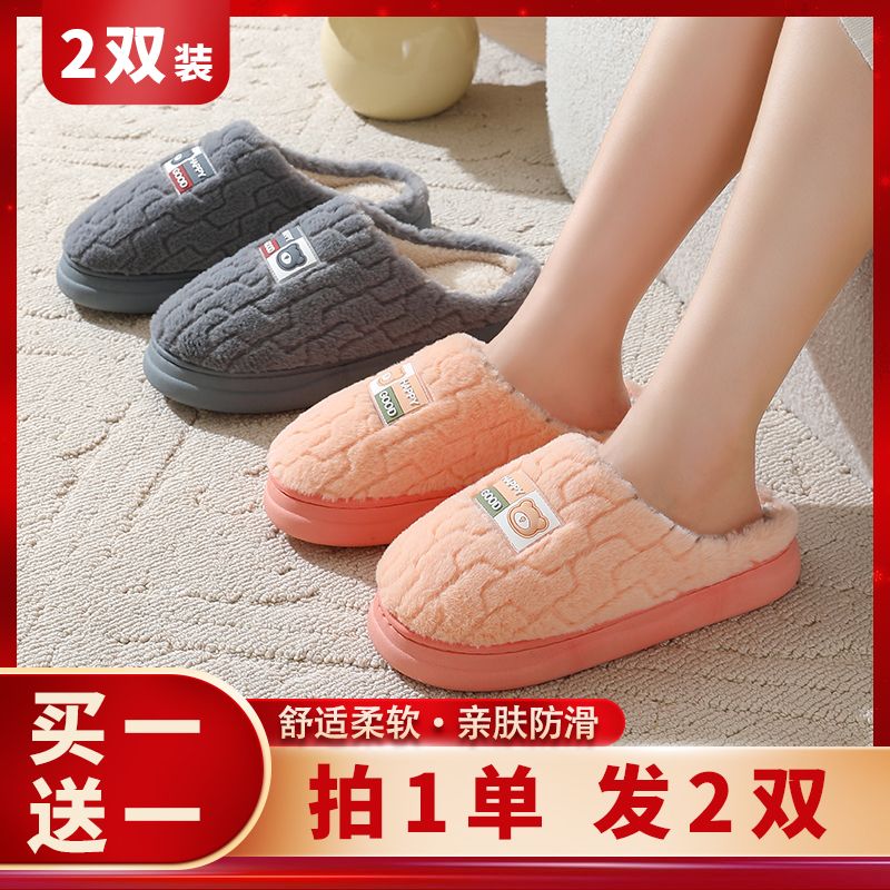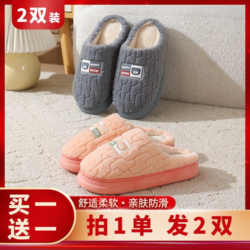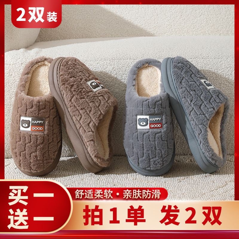 买一送一棉拖鞋男秋冬季加厚底防滑情侣保暖居家室内毛绒拖鞋女士