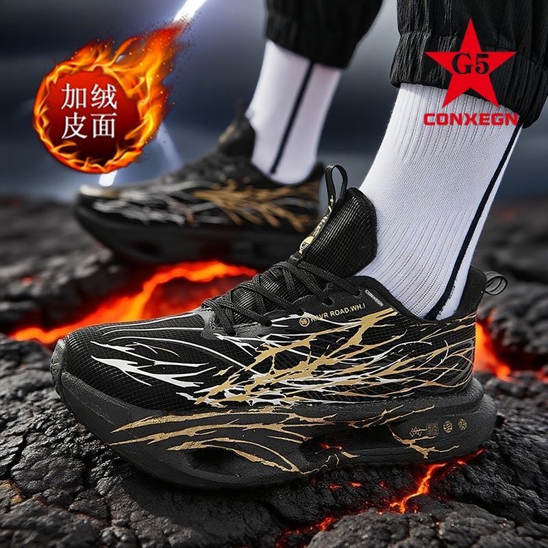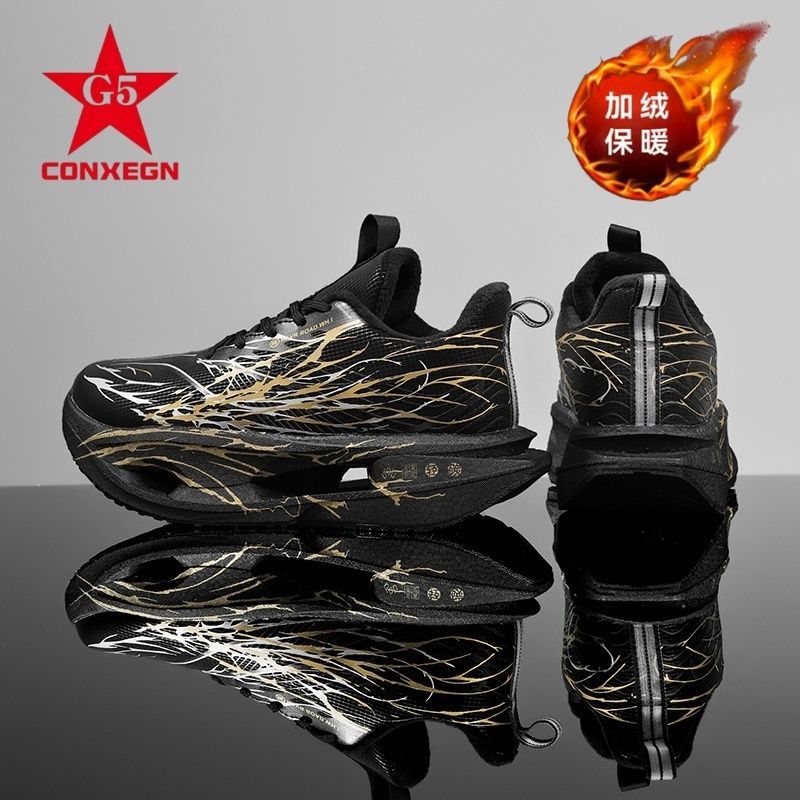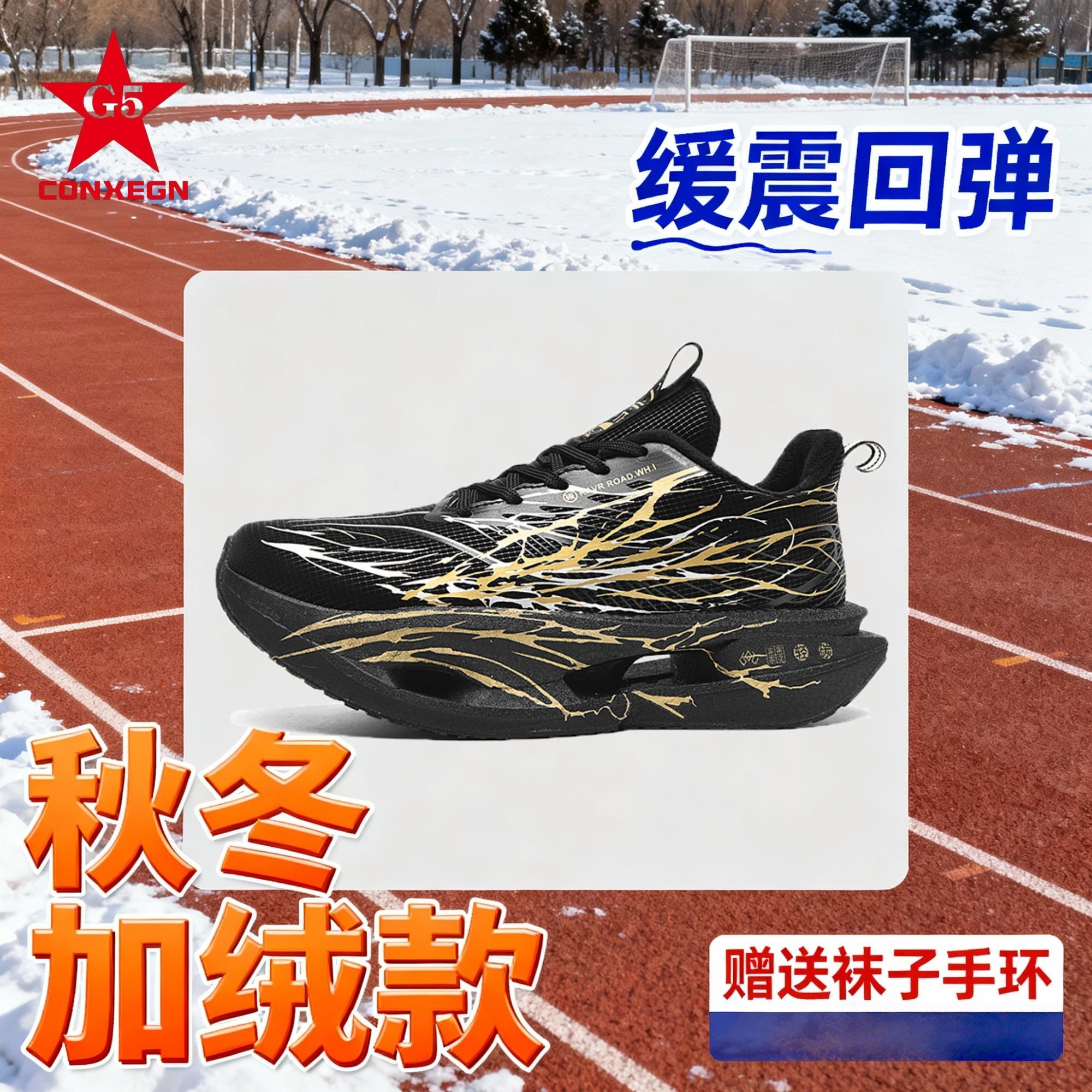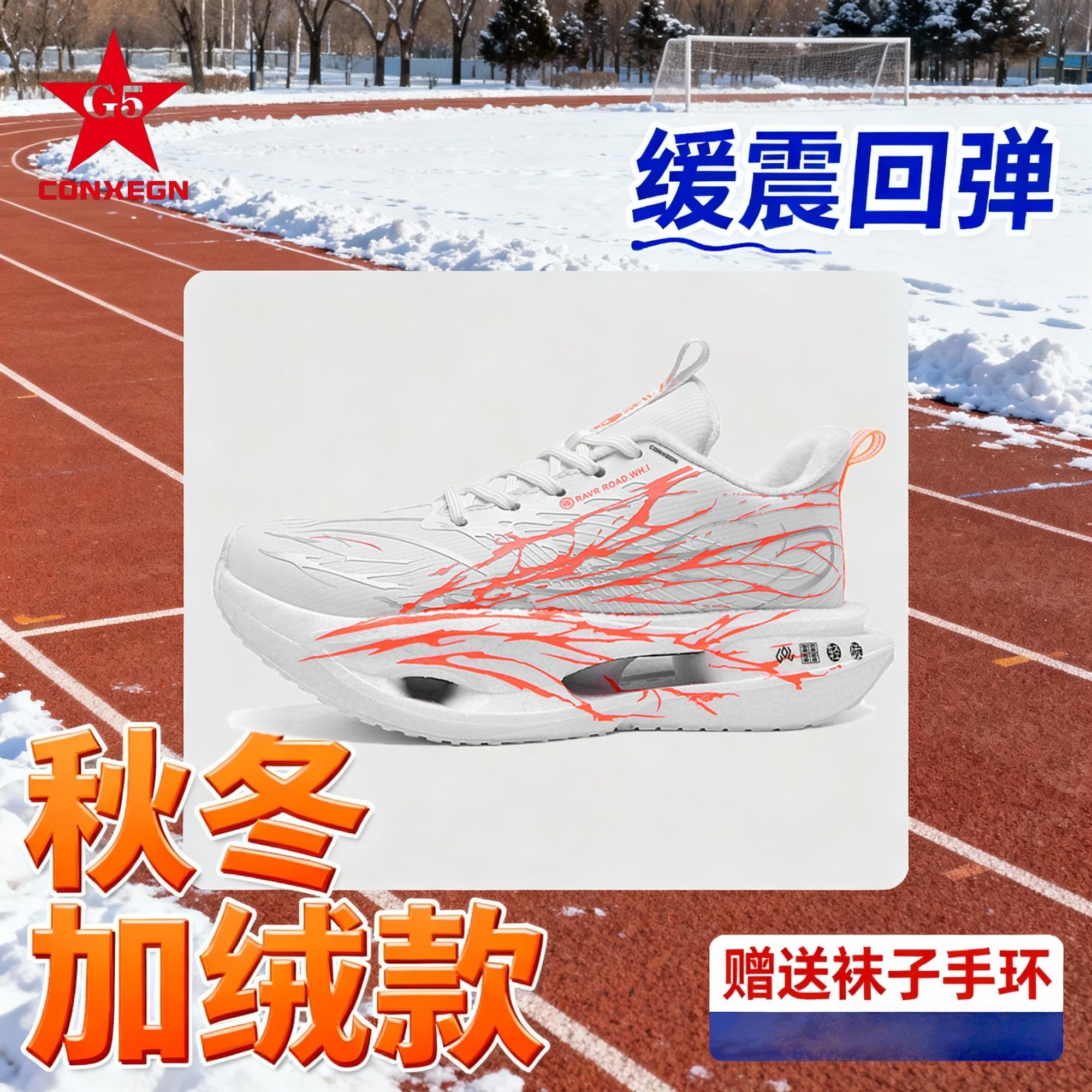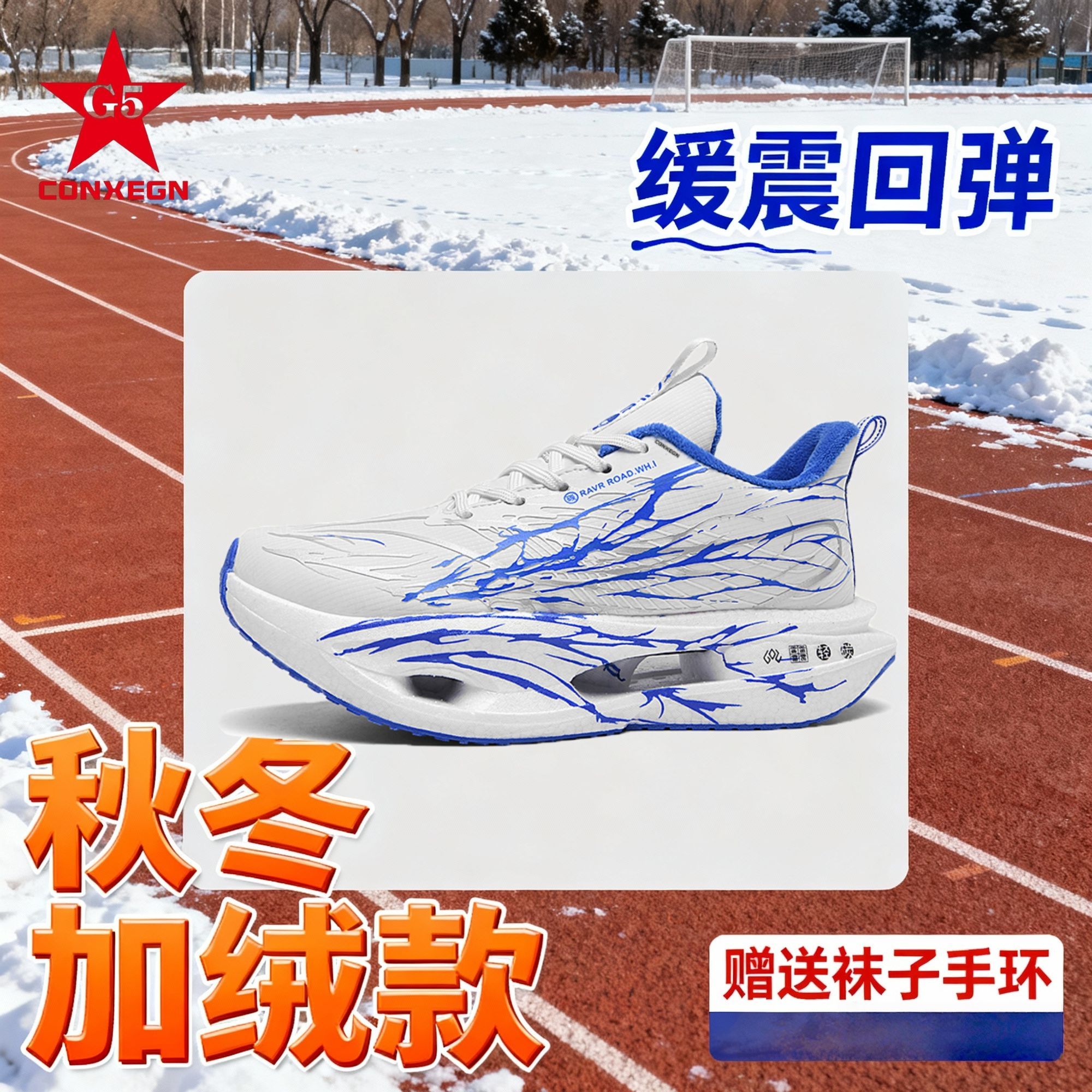 G5秋冬加绒双层镂空减震碳板跑步鞋学生青少年保暖棉鞋运动休闲鞋