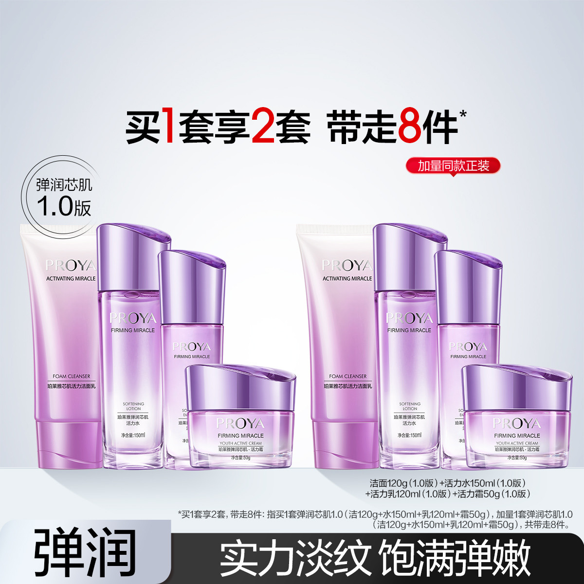 珀莱雅 【拍一带走两套】弹润芯肌洁水乳霜4件套紧致抗皱淡纹
