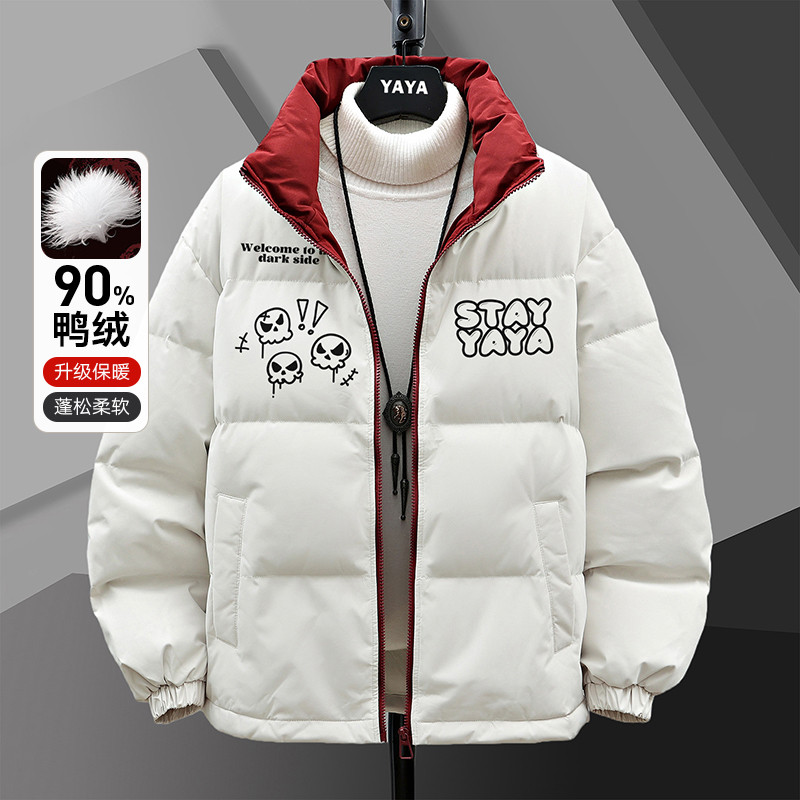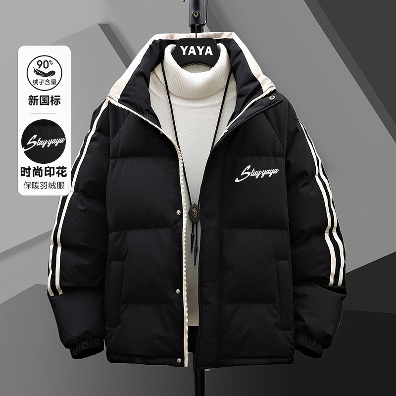 鸭鸭 【大朵鸭绒】冬季潮流撞色厚款羽绒服短款立领保暖休闲外套男