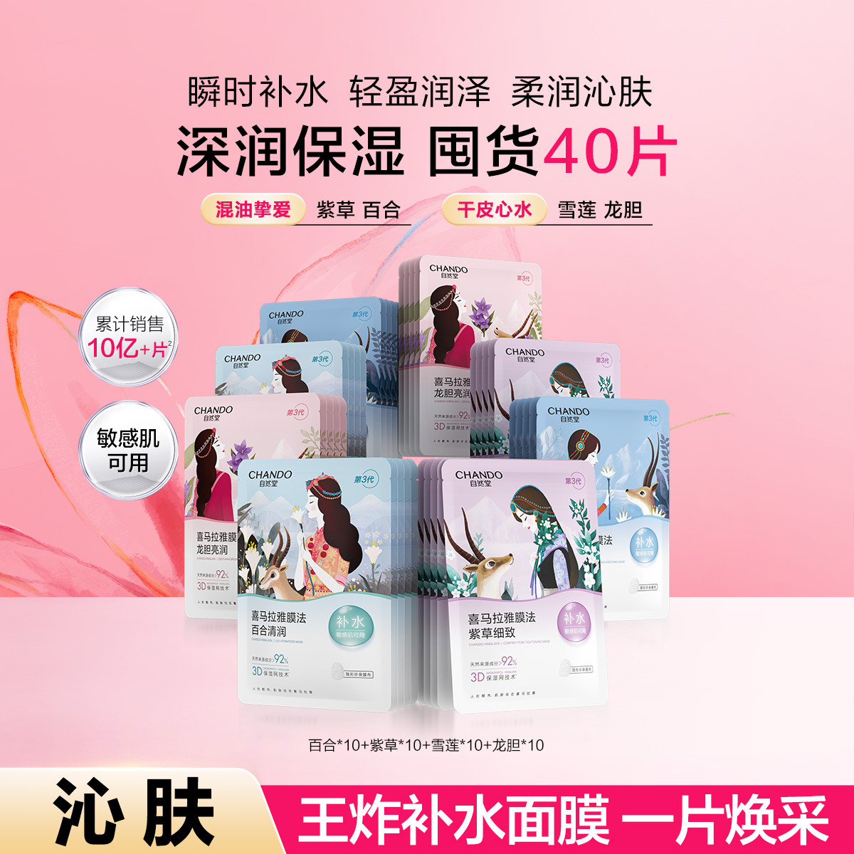 自然堂 【植物补水面膜40片囤货装】天然补水适敏温和改善干燥深润保湿