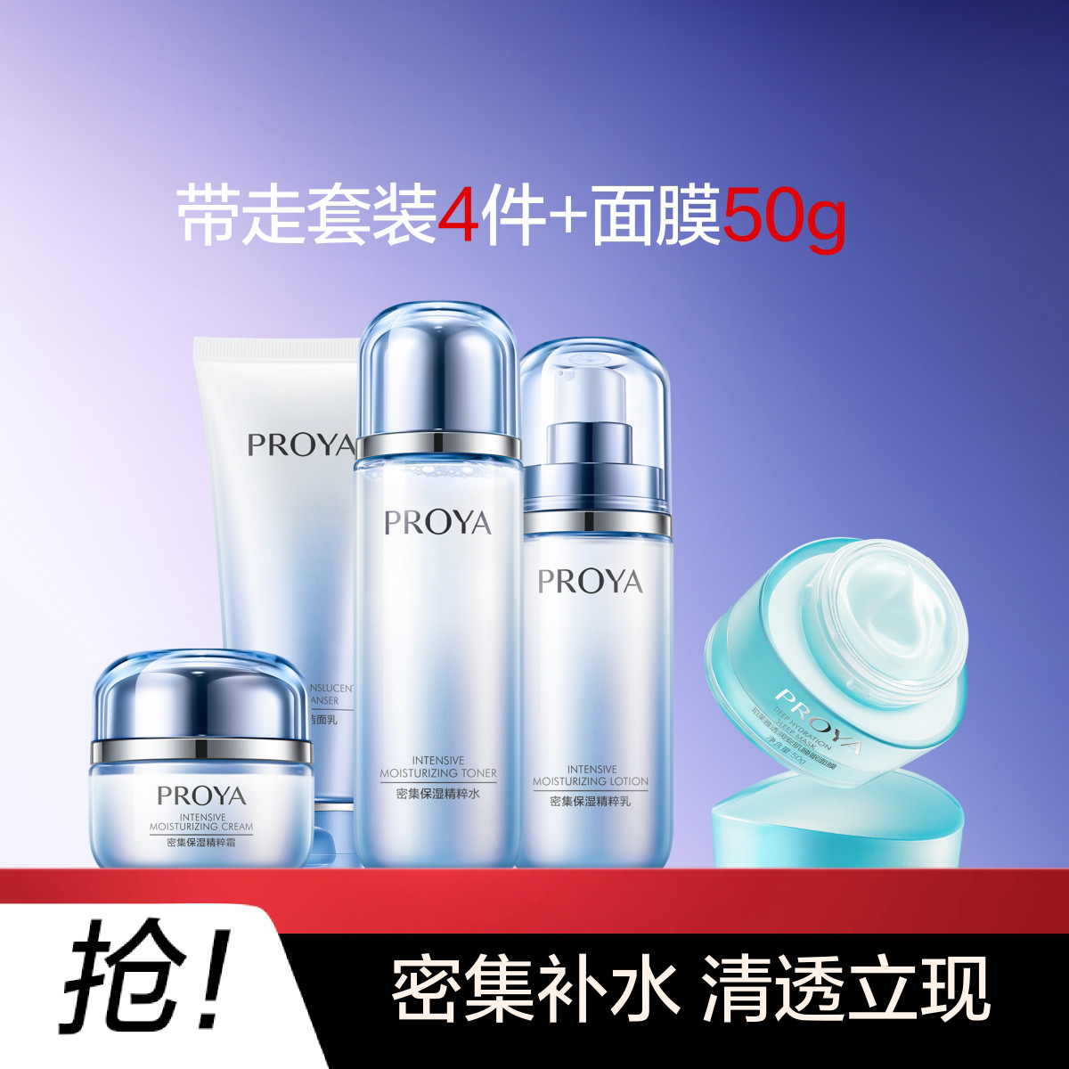 珀莱雅 【38现货立抢】密集保湿洁面水乳面霜保湿面膜套装