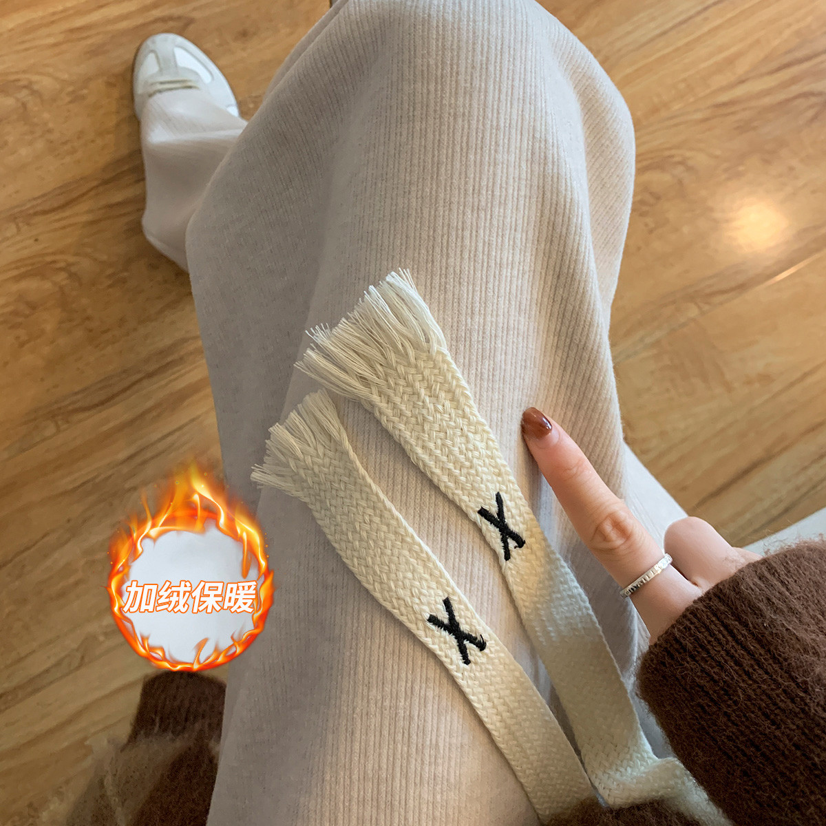 ONE MORE 冬季加绒休闲裤子女潮流高腰显瘦抗寒窄版垂感阔腿加厚可选