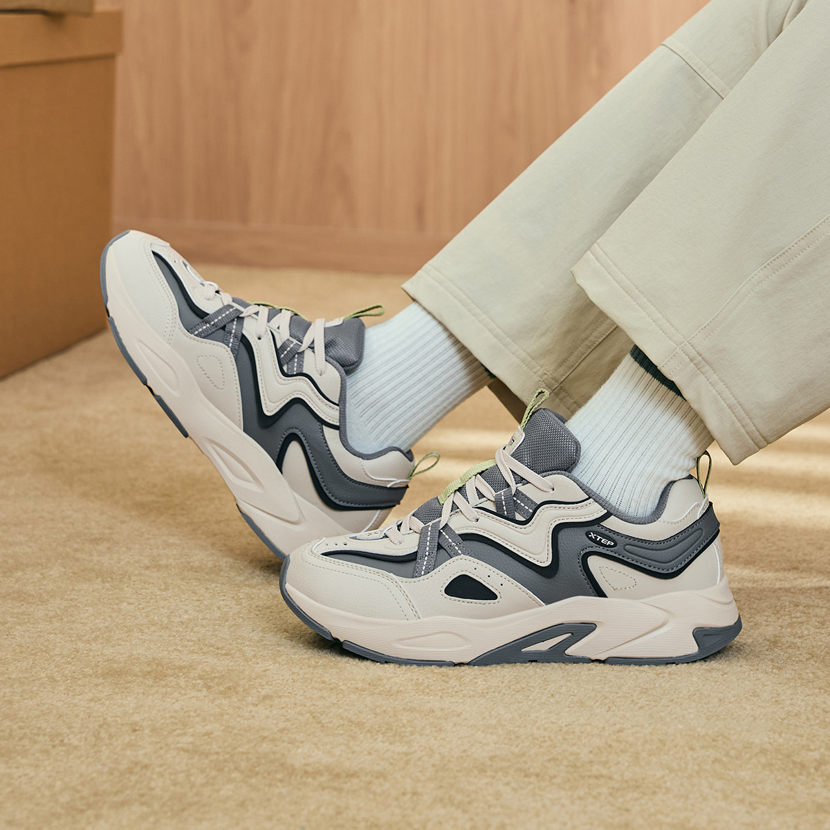 特步 【赤壁3.0】男鞋复古增高老爹鞋街头潮流百搭耐磨运动休闲鞋子