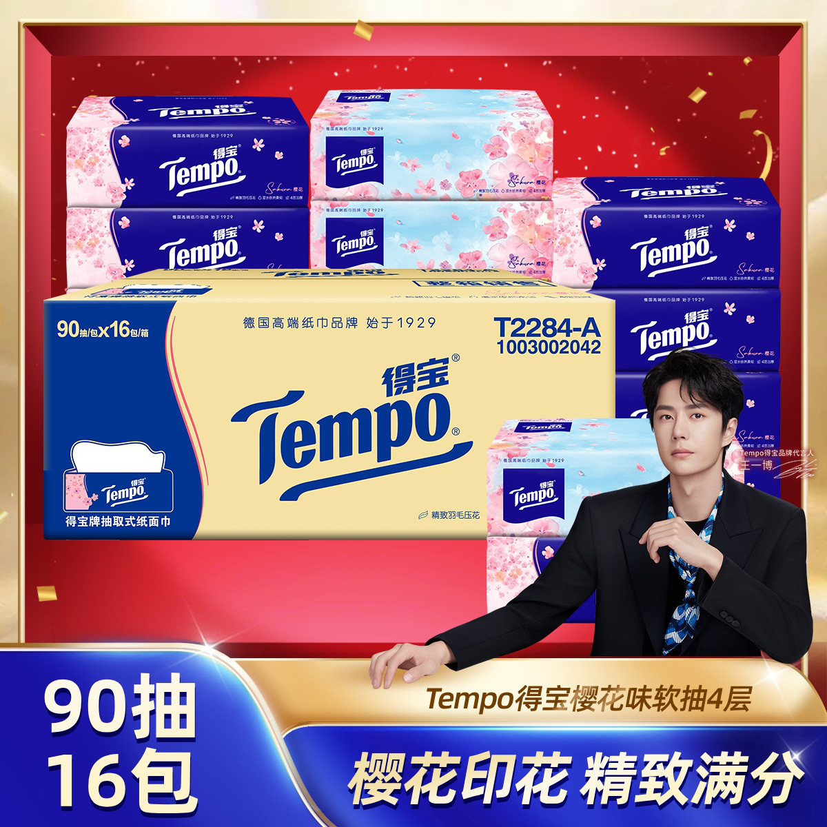得宝 【王一博推荐】樱花香味抽纸4层加厚家用大包纸巾90抽16包