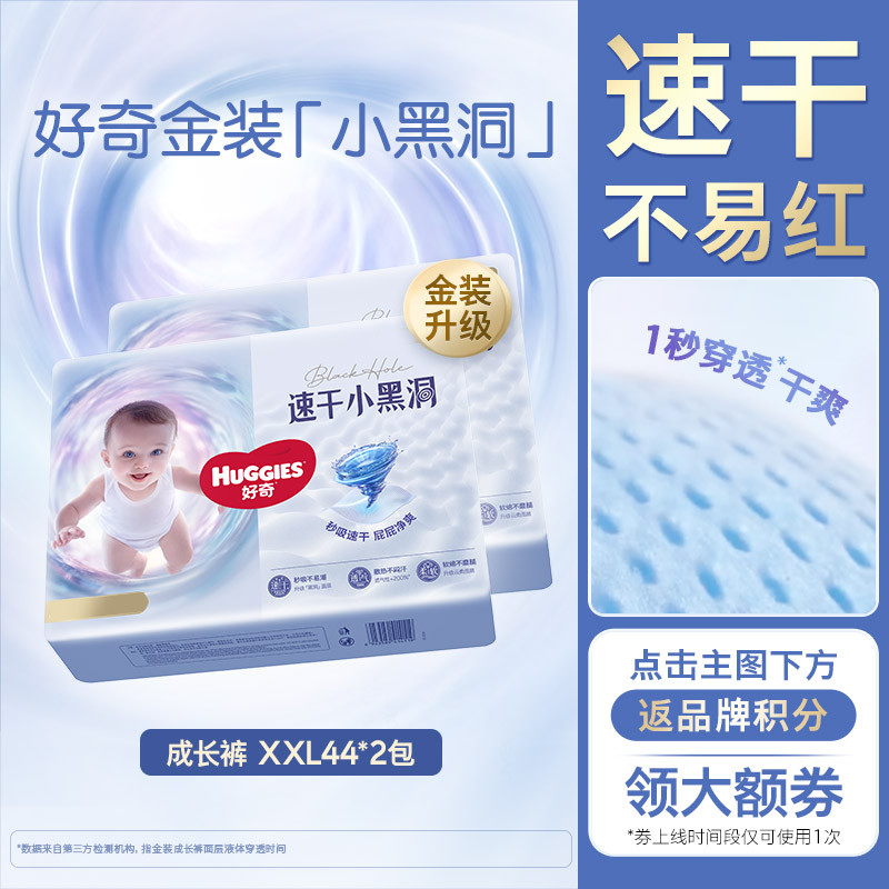 好奇 金装拉拉裤成长裤速干小黑洞L128/XL108/2XL88/3XL68/4XL新老随机