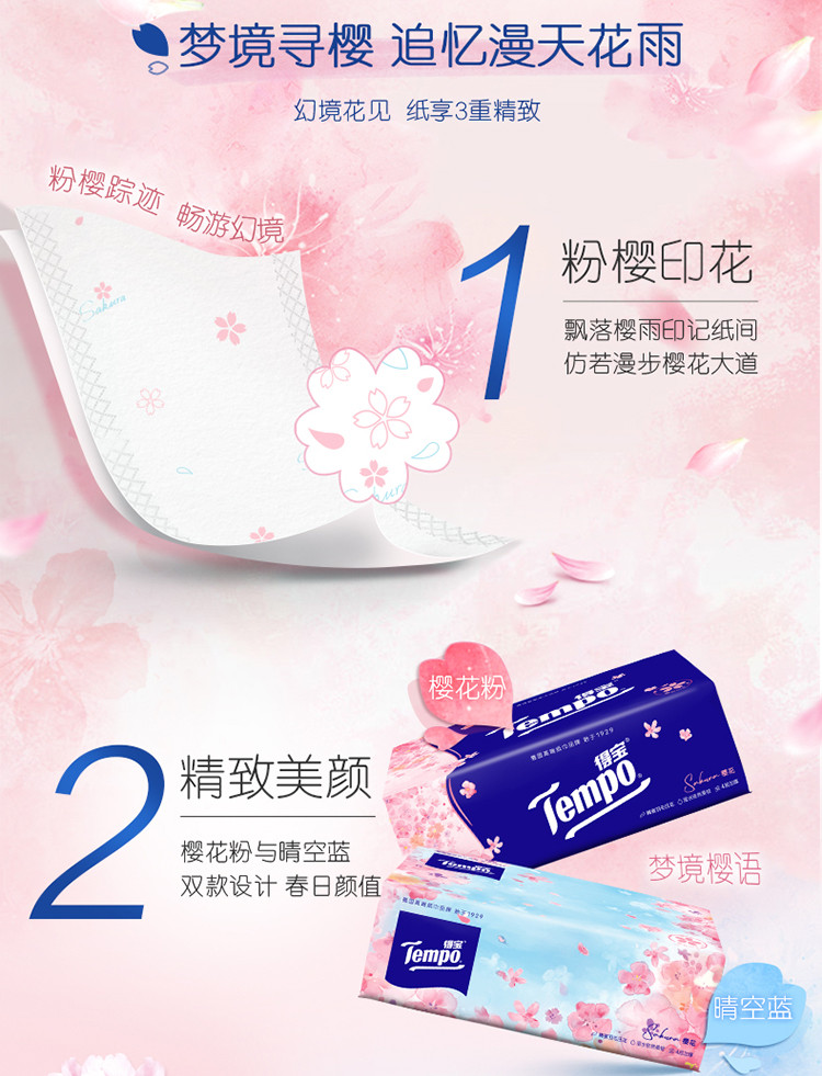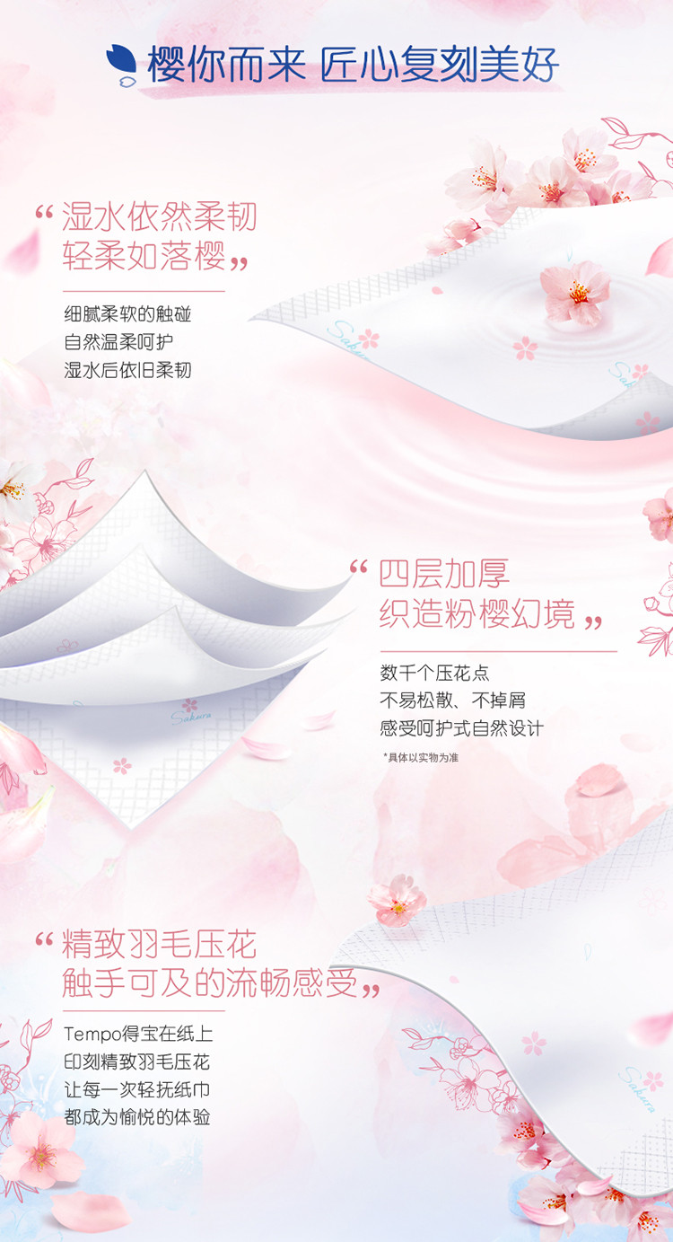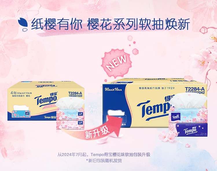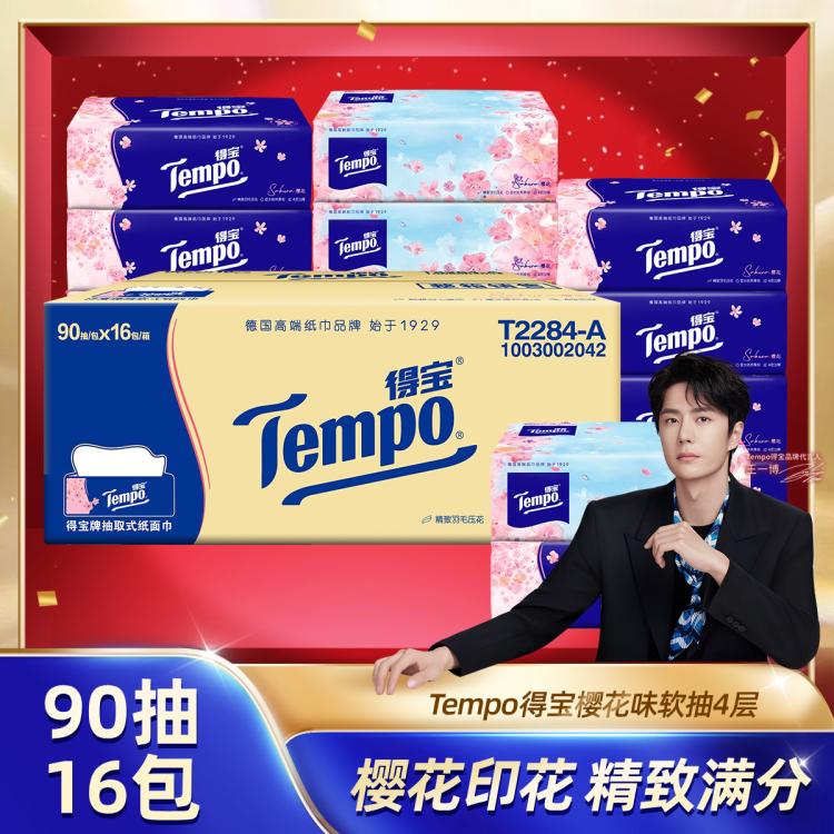 得宝 【王一博推荐】樱花香味抽纸4层加厚家用大包纸巾90抽16包 【售价】:¥54 下单链接: