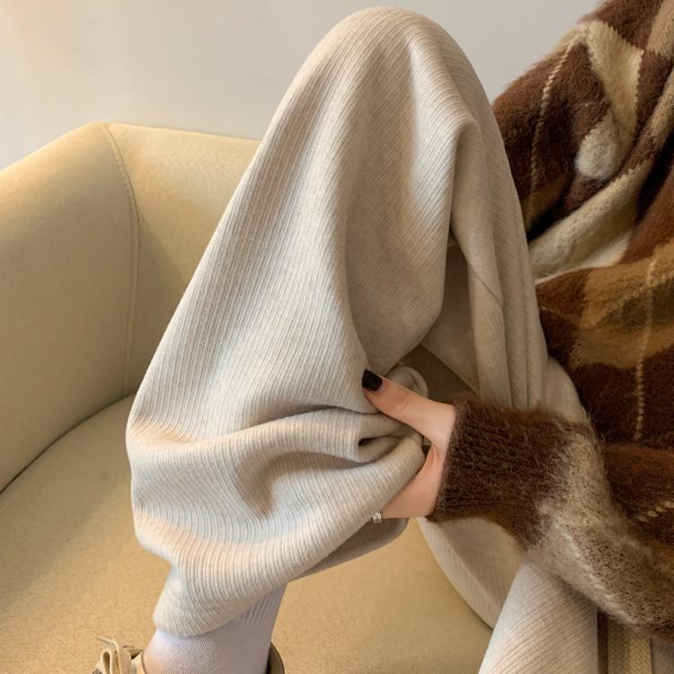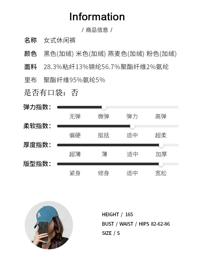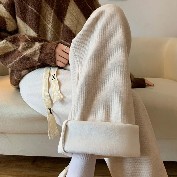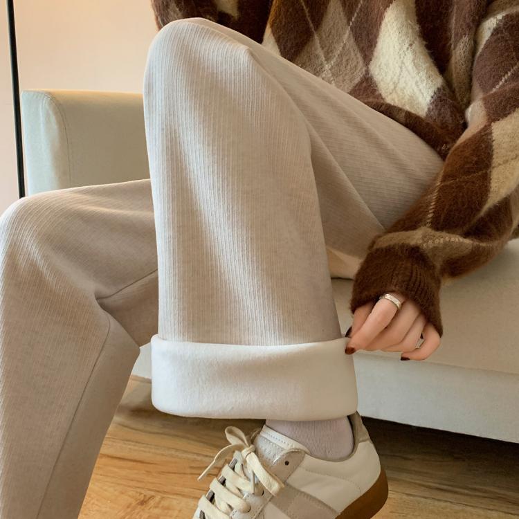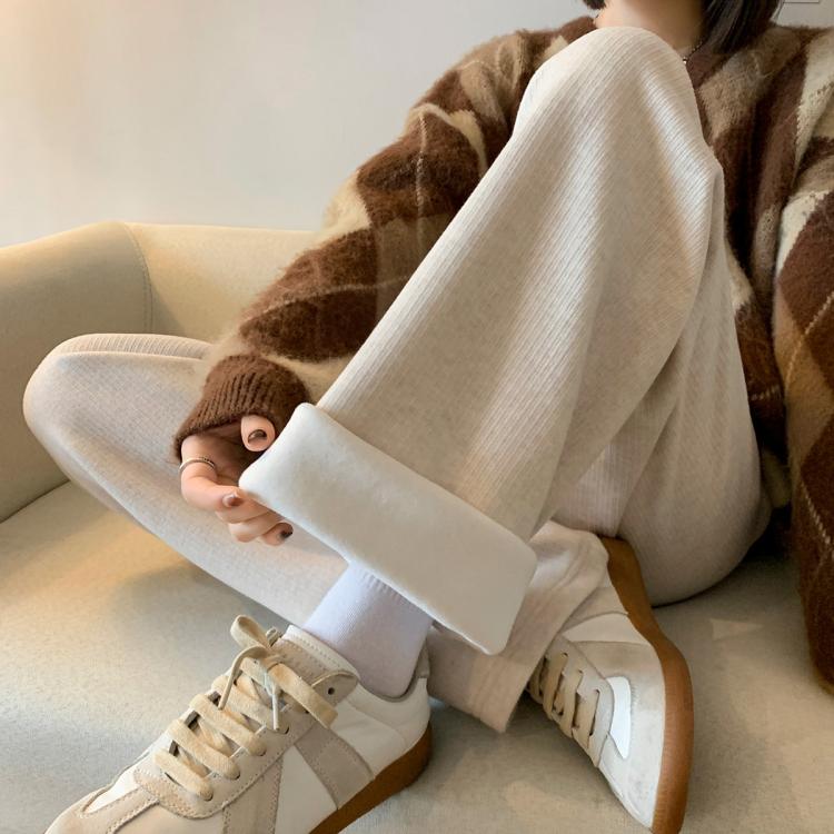 ONE MORE 冬季加绒休闲裤子女潮流高腰显瘦抗寒窄版垂感阔腿加厚可选 【售价】:¥75 下单链接: