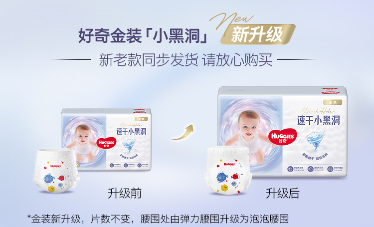 好奇 金装拉拉裤成长裤速干小黑洞L128/XL108/2XL88/3XL68/4XL新老随机