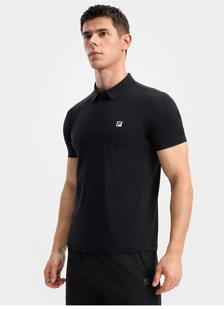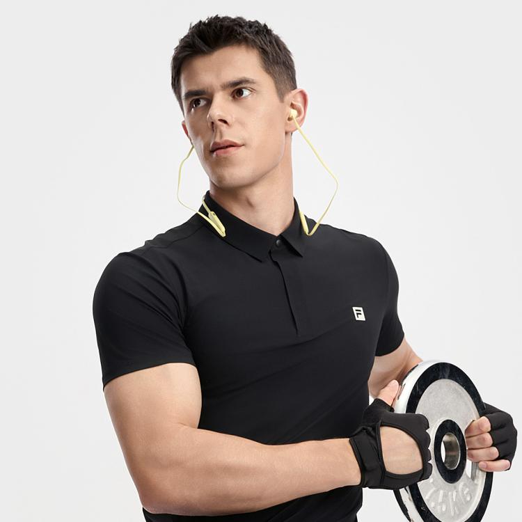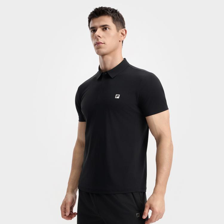 FILA 【凉感】男装男式运动Polo衫男士健身简约柔软针织短袖上衣