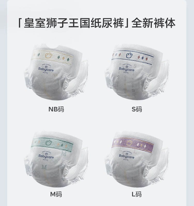 Babycare 【加量装】皇室狮子王国新生儿弱酸纸尿裤NB-XL 【售价】:¥71 【优惠券】:¥15.00 下单链接: