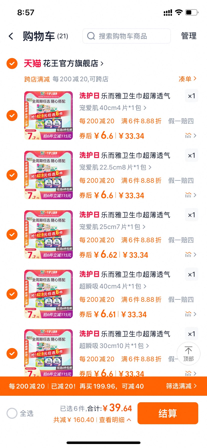 12月12日:花王乐而雅卫生巾 任选6件 到手 39.64